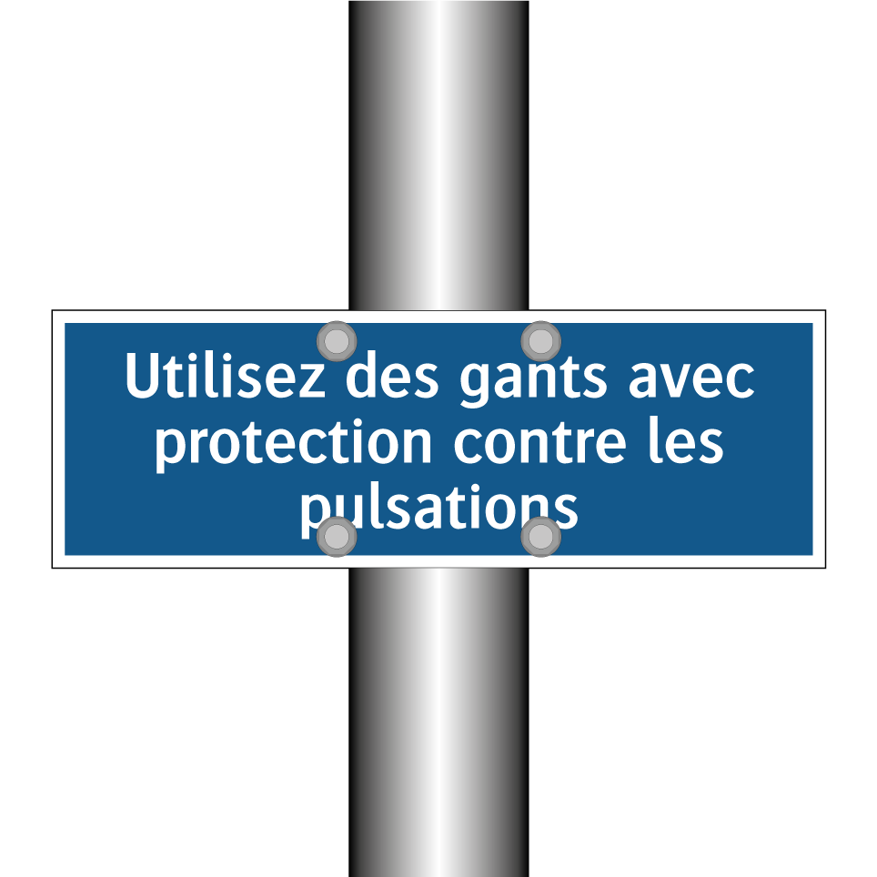 Panneau d'obligation avec le texte : "Utilisez des gants avec protection contre les pulsations"