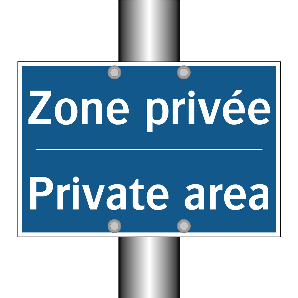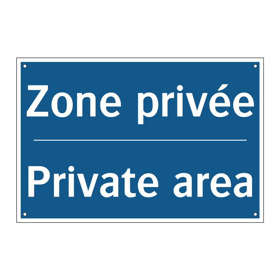 Panneau d'obligation bilingue avec texte en français : "Zone privée", et en anglais : "Private area"