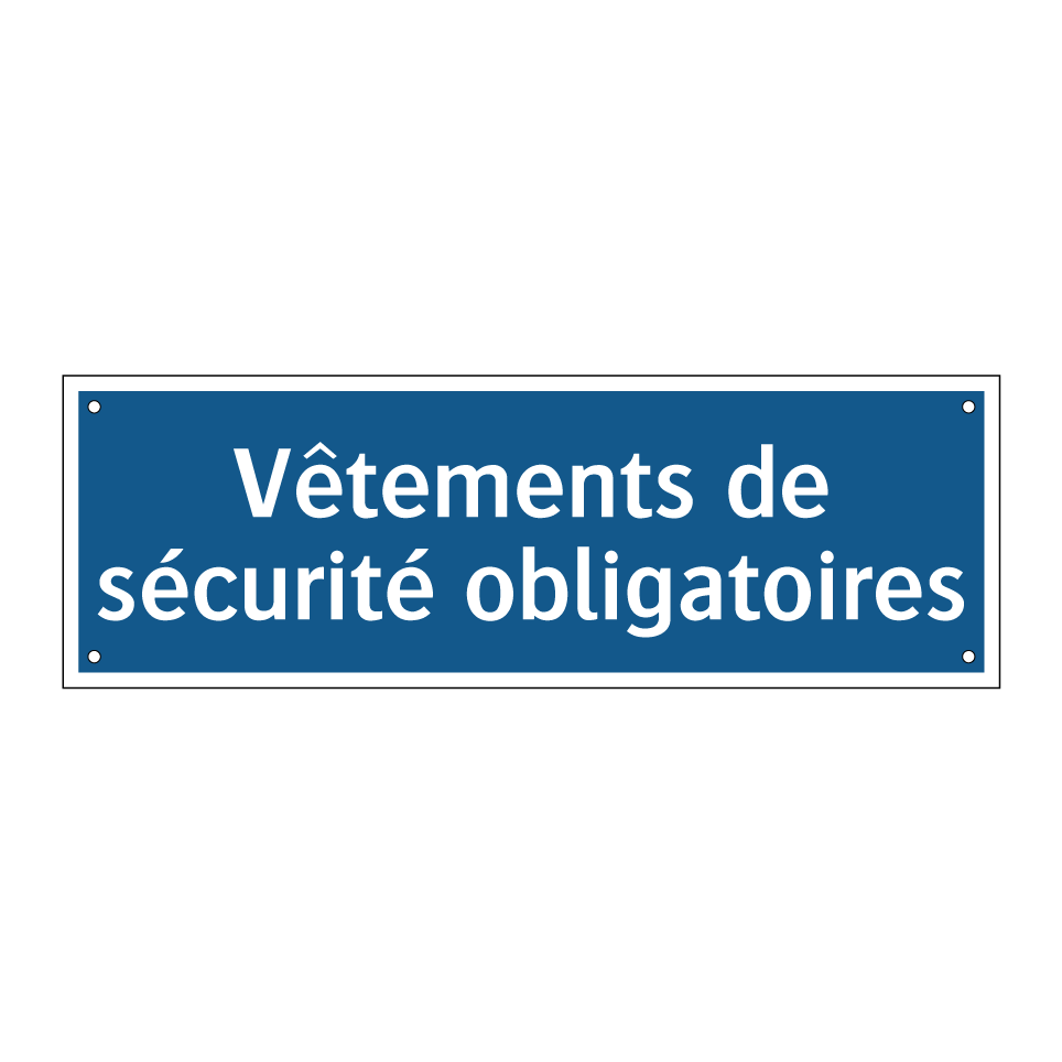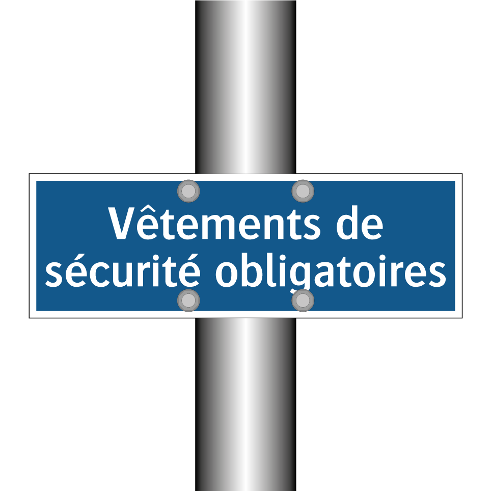 Panneau d'obligation avec le texte : "Vêtements de sécurité obligatoires"