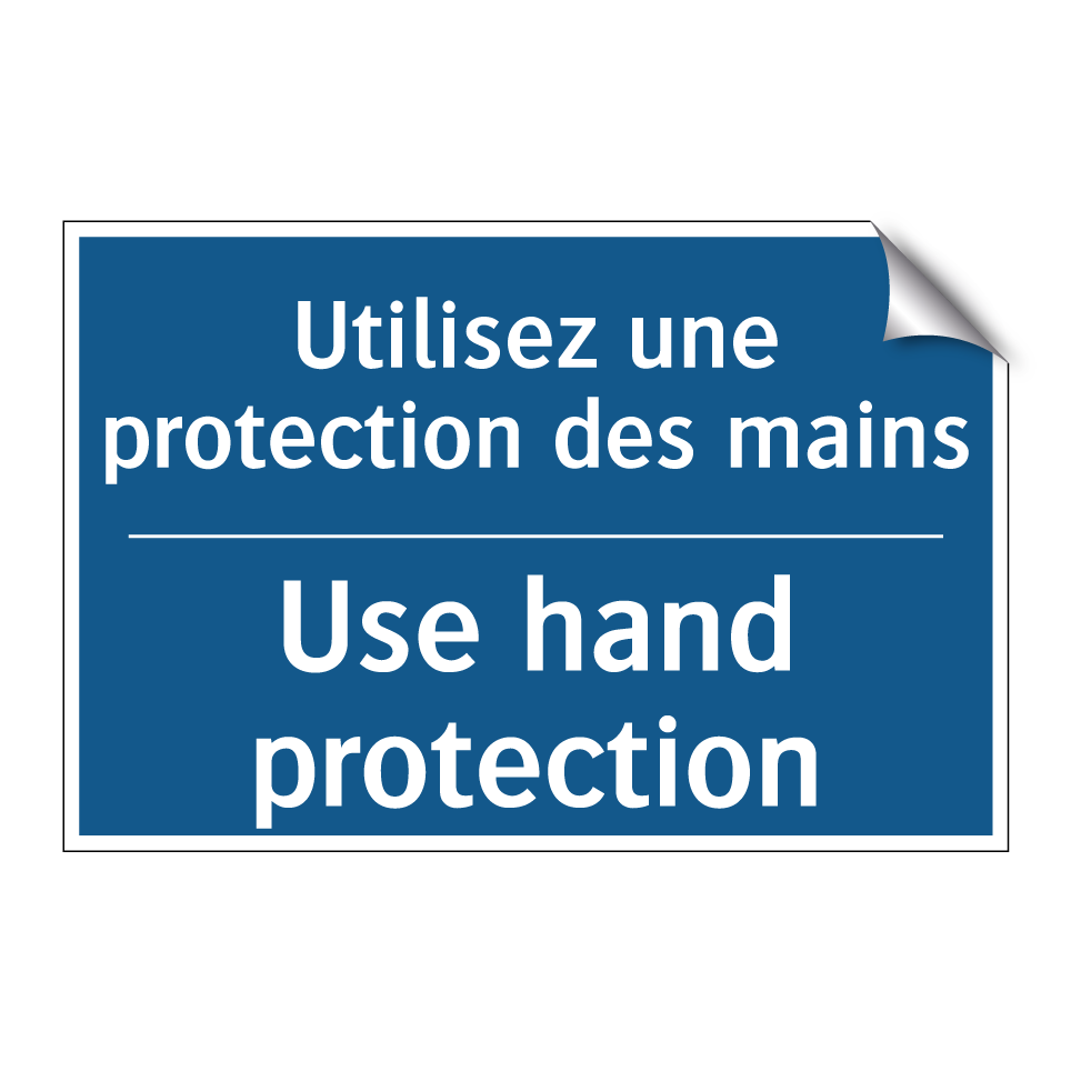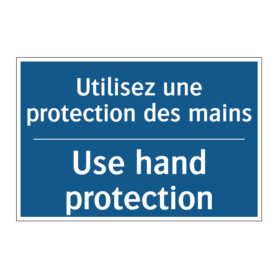 Panneau d'obligation bilingue avec texte en français : "Utilisez une protection des mains", et en anglais : "Use hand protection"