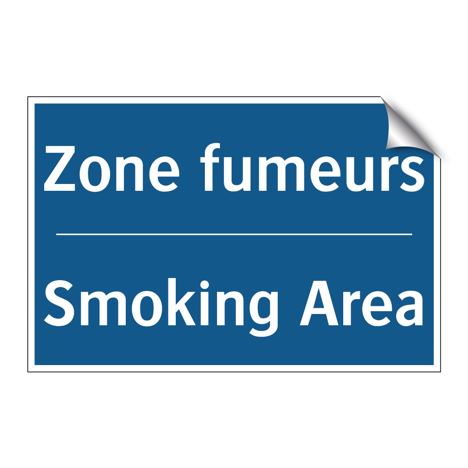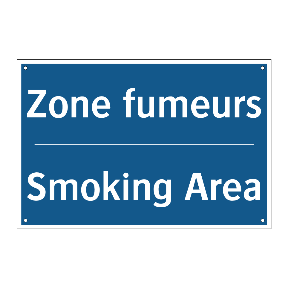 Panneau d'obligation bilingue avec texte en français : "Zone fumeurs", et en anglais : "Smoking Area"