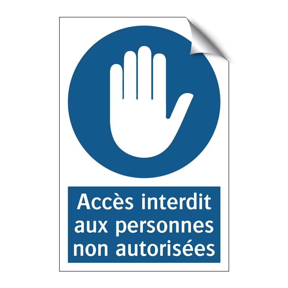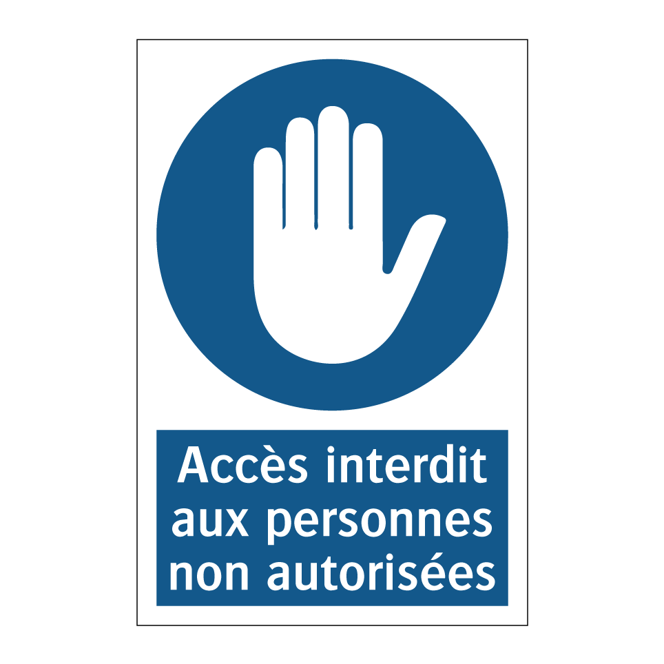 Panneau d'obligation avec le texte : "Accès interdit aux personnes non autorisées"