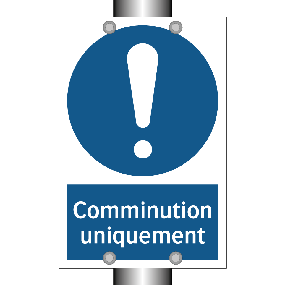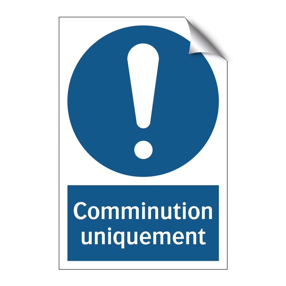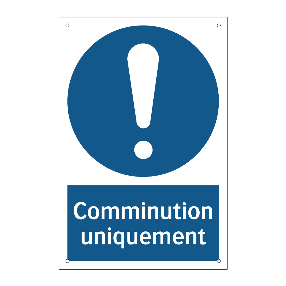 Panneau d'obligation avec le texte : "Comminution uniquement"