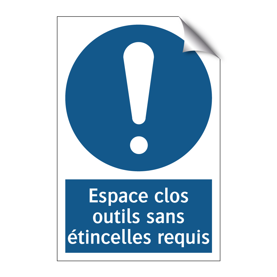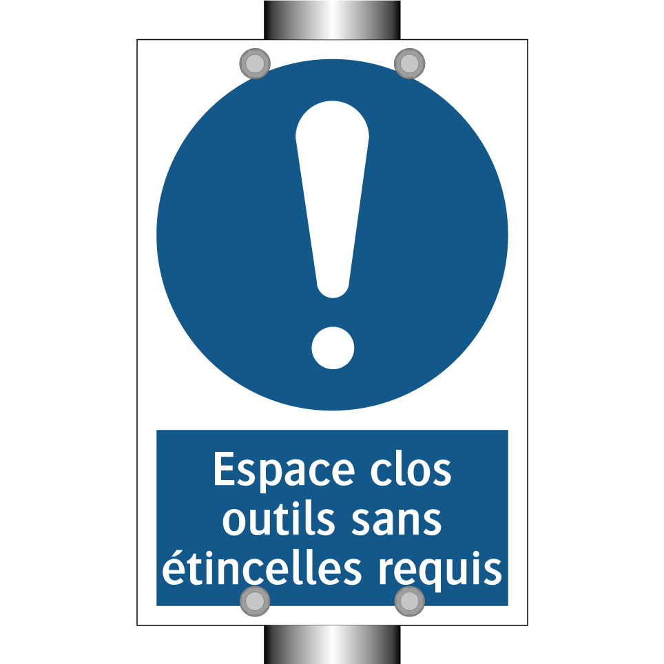 Panneau d'obligation avec le texte : "Espace clos outils sans étincelles requis"