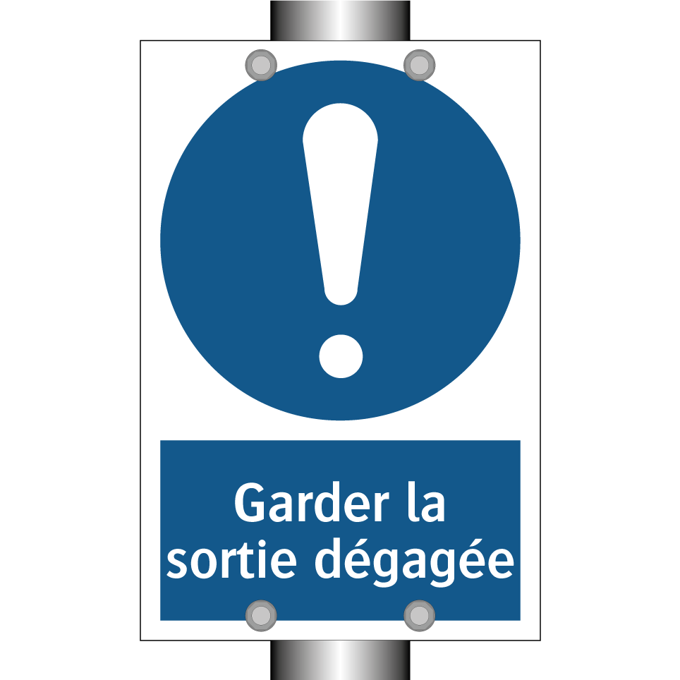 Panneau d'obligation avec le texte : "Garder la sortie dégagée"