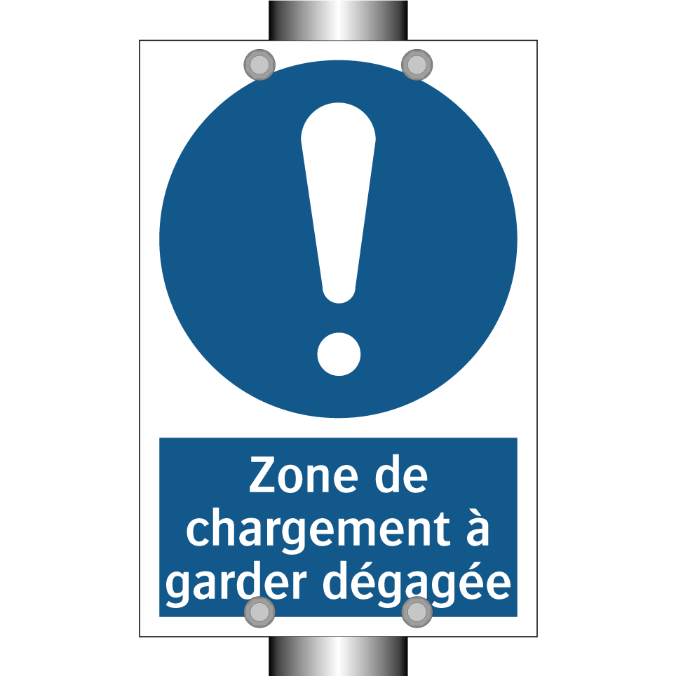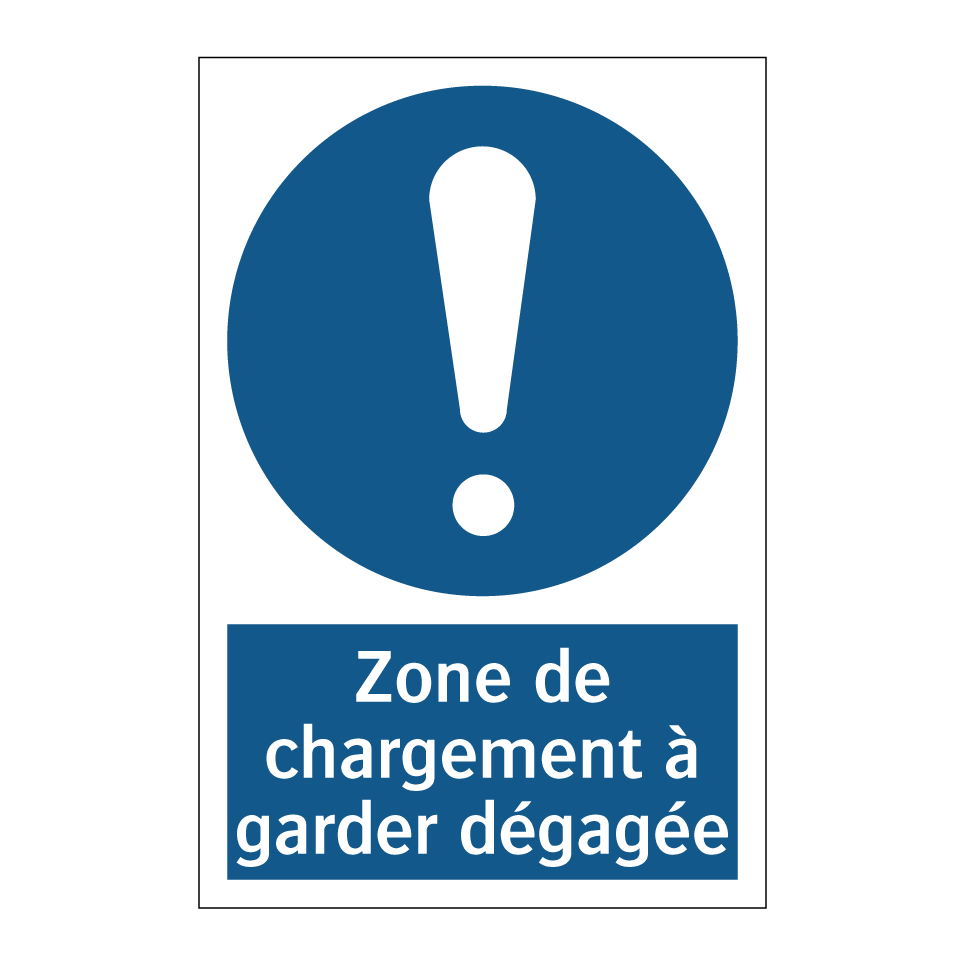 Panneau d'obligation avec le texte : "Zone de chargement à garder dégagée"