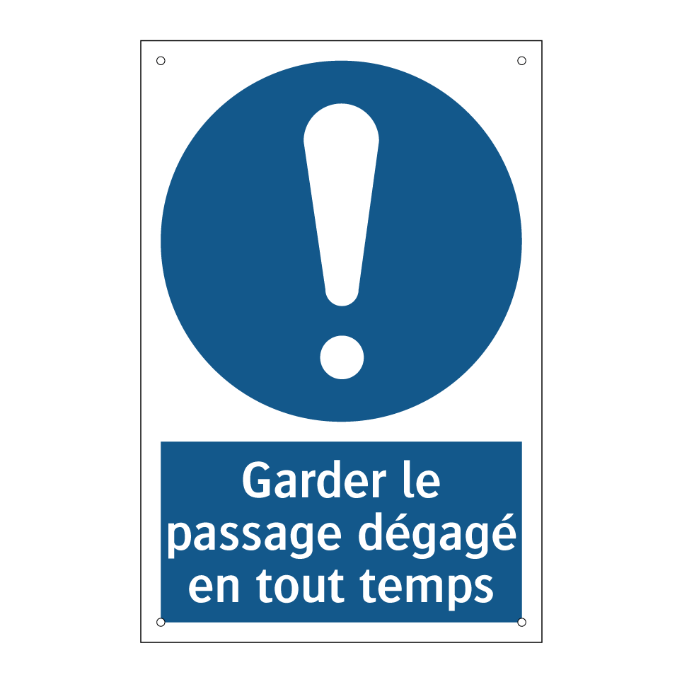 Panneau d'obligation avec le texte : "Garder le passage dégagé en tout temps"