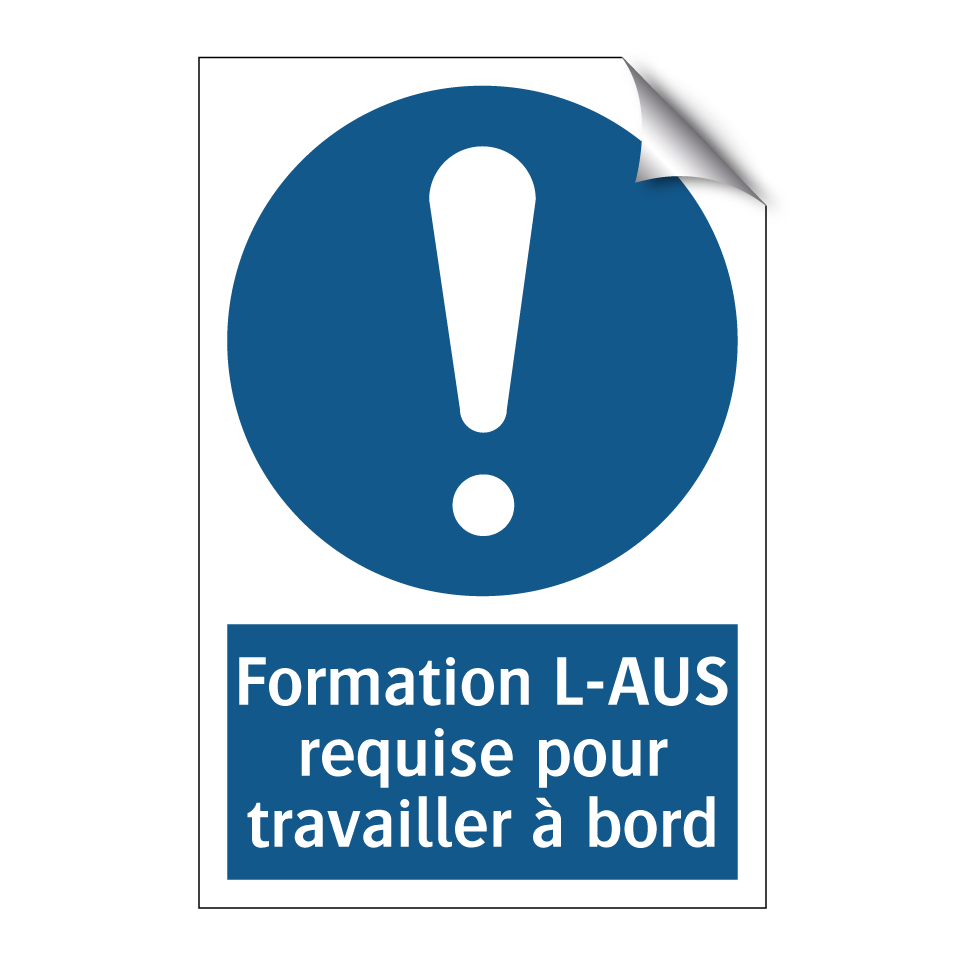Panneau d'obligation avec le texte : "Formation L-AUS requise pour travailler à bord"