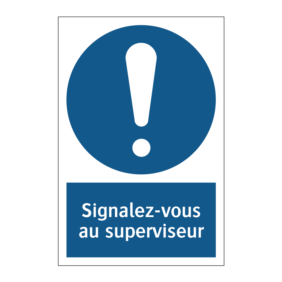 Panneau d'obligation avec le texte : "Signalez-vous au superviseur"