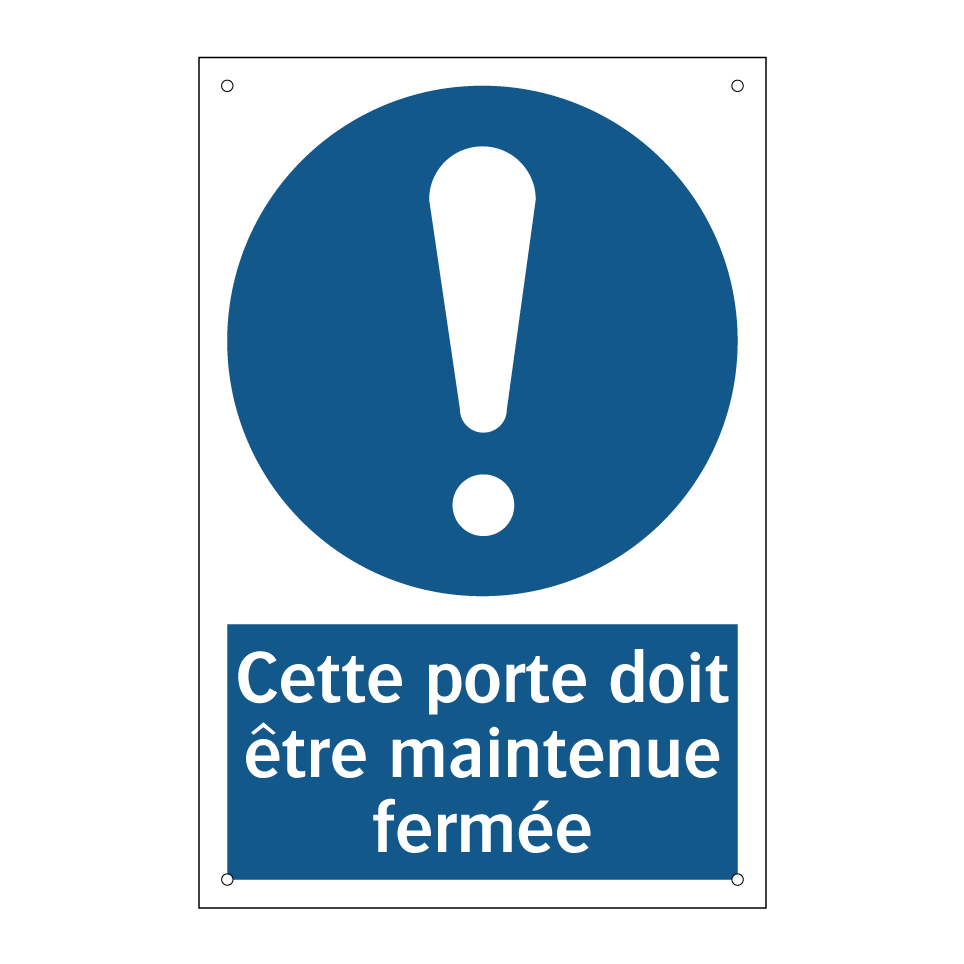 Panneau d'obligation avec le texte : "Cette porte doit être maintenue fermée"