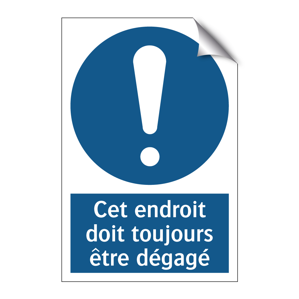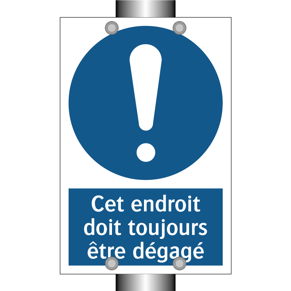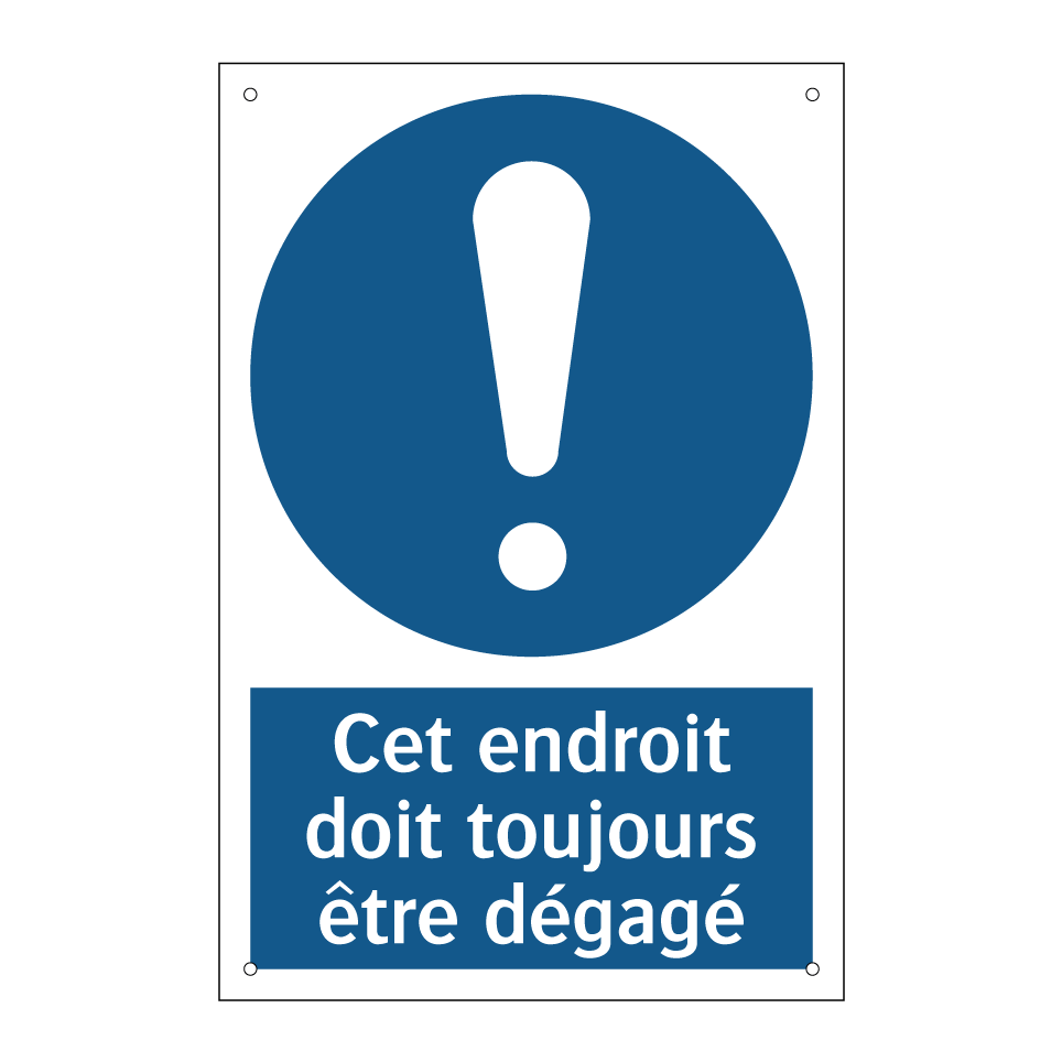 Panneau d'obligation avec le texte : "Cet endroit doit toujours être dégagé"