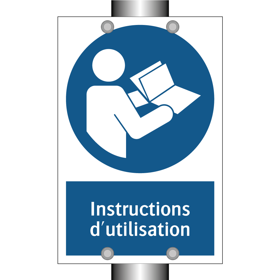Panneau d'obligation avec le texte : "Instructions d'utilisation"