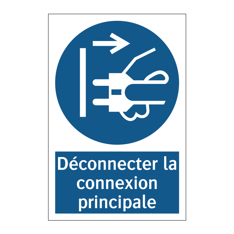 Panneau d'obligation avec le texte : "Déconnecter la connexion principale"