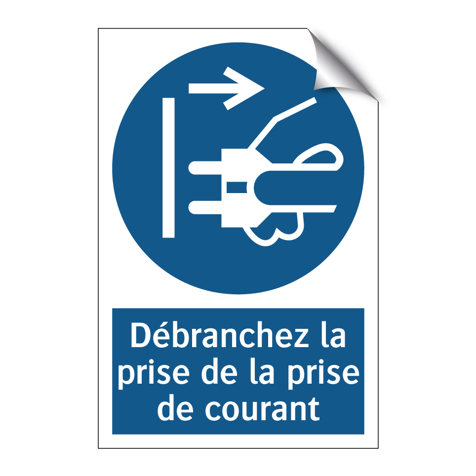 Panneau d'obligation avec le texte : "Débranchez la prise de la prise de courant"