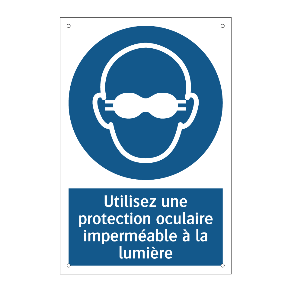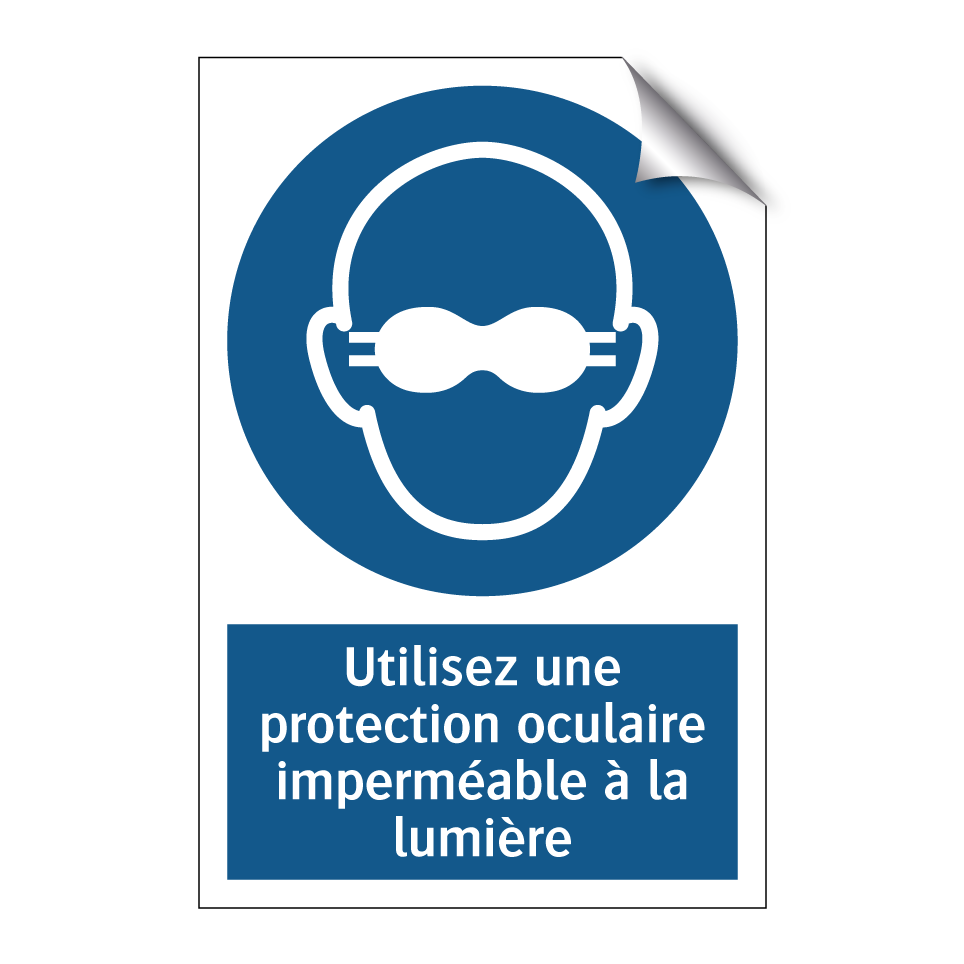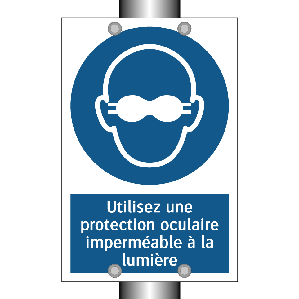 Panneau d'obligation avec le texte : "Utilisez une protection oculaire imperméable à la lumière"