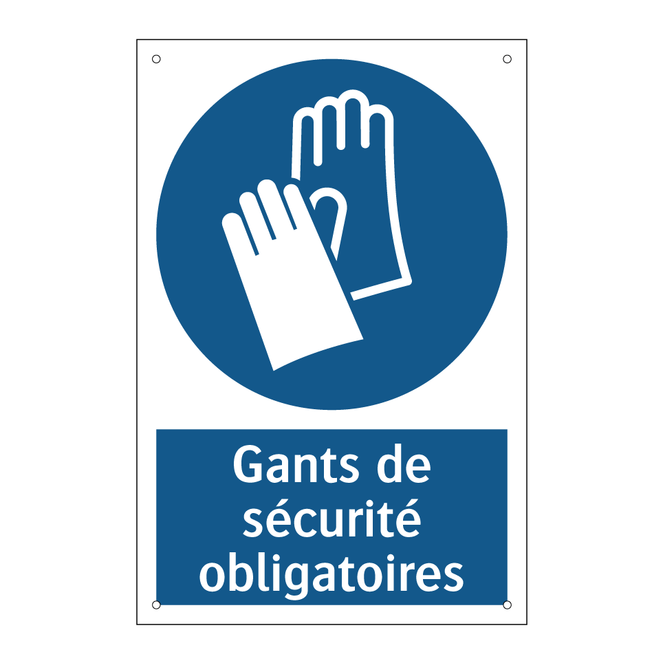 Panneau d'obligation avec le texte : "Gants de sécurité obligatoires"
