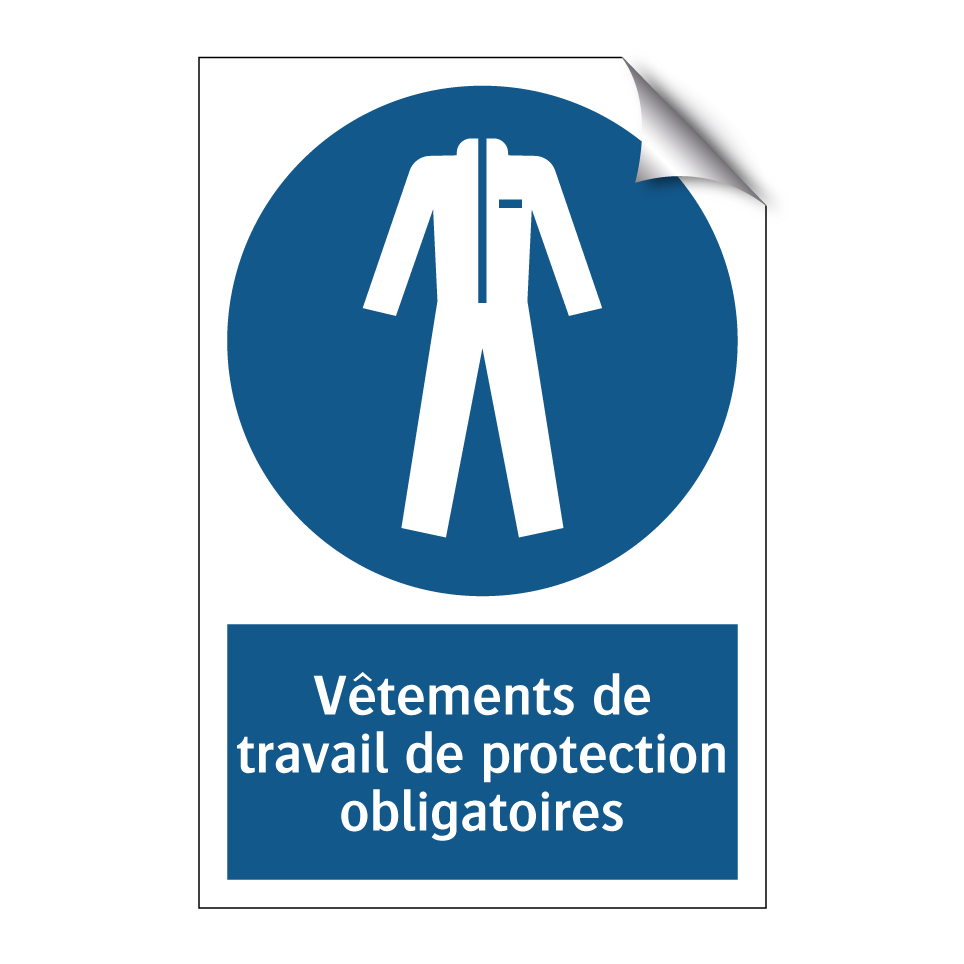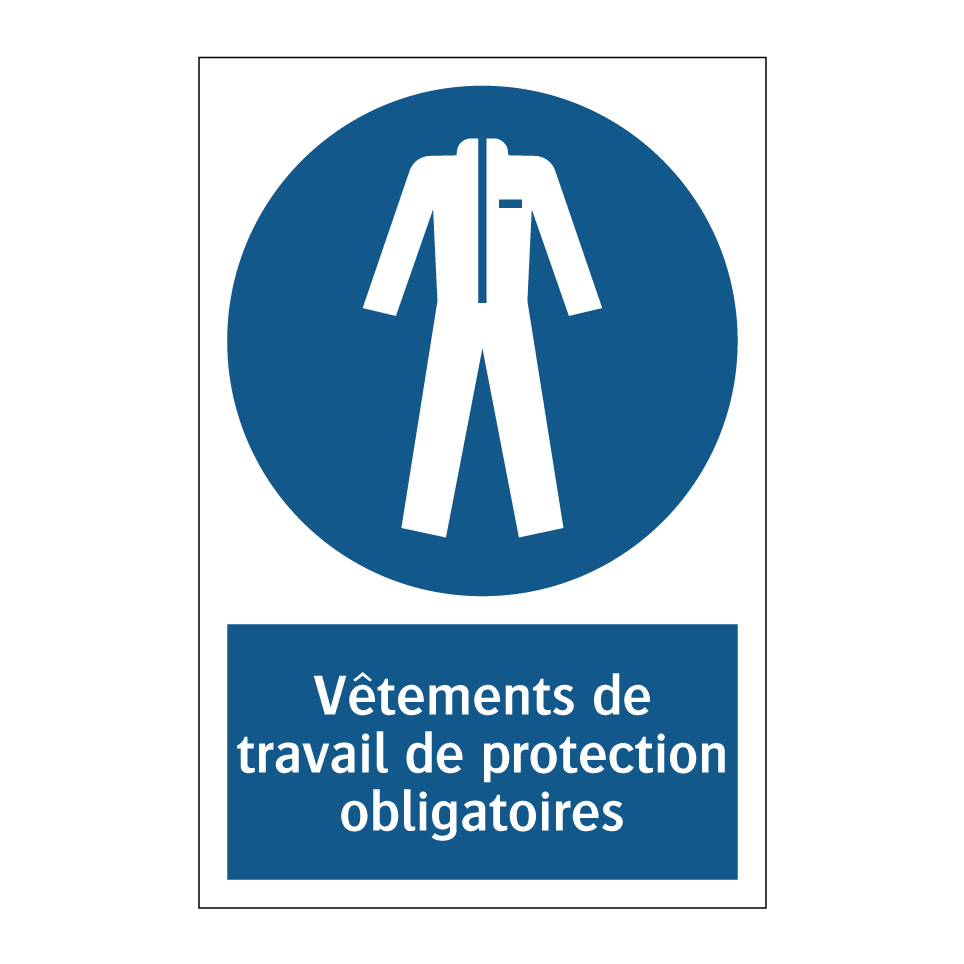 Panneau d'obligation avec le texte : "Vêtements de travail de protection obligatoires"