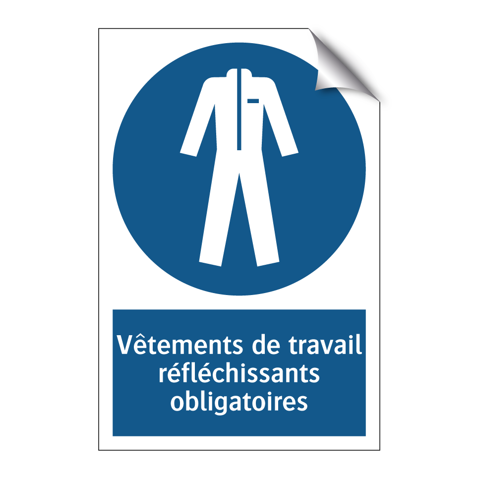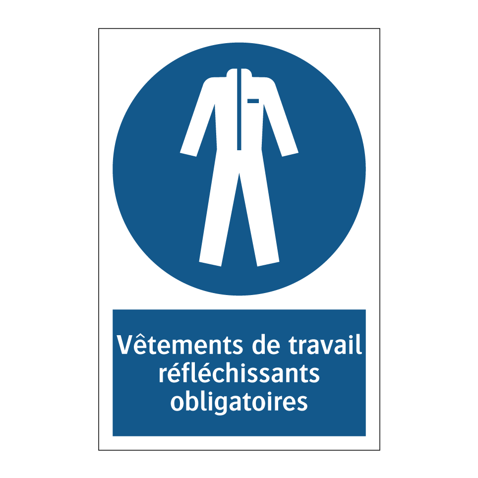 Panneau d'obligation avec le texte : "Vêtements de travail réfléchissants obligatoires"