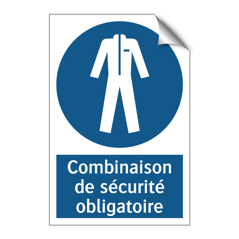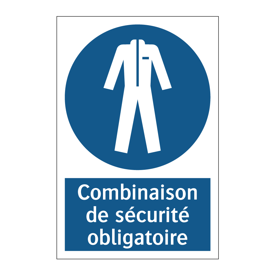 Panneau d'obligation avec le texte : "Combinaison de sécurité obligatoire"