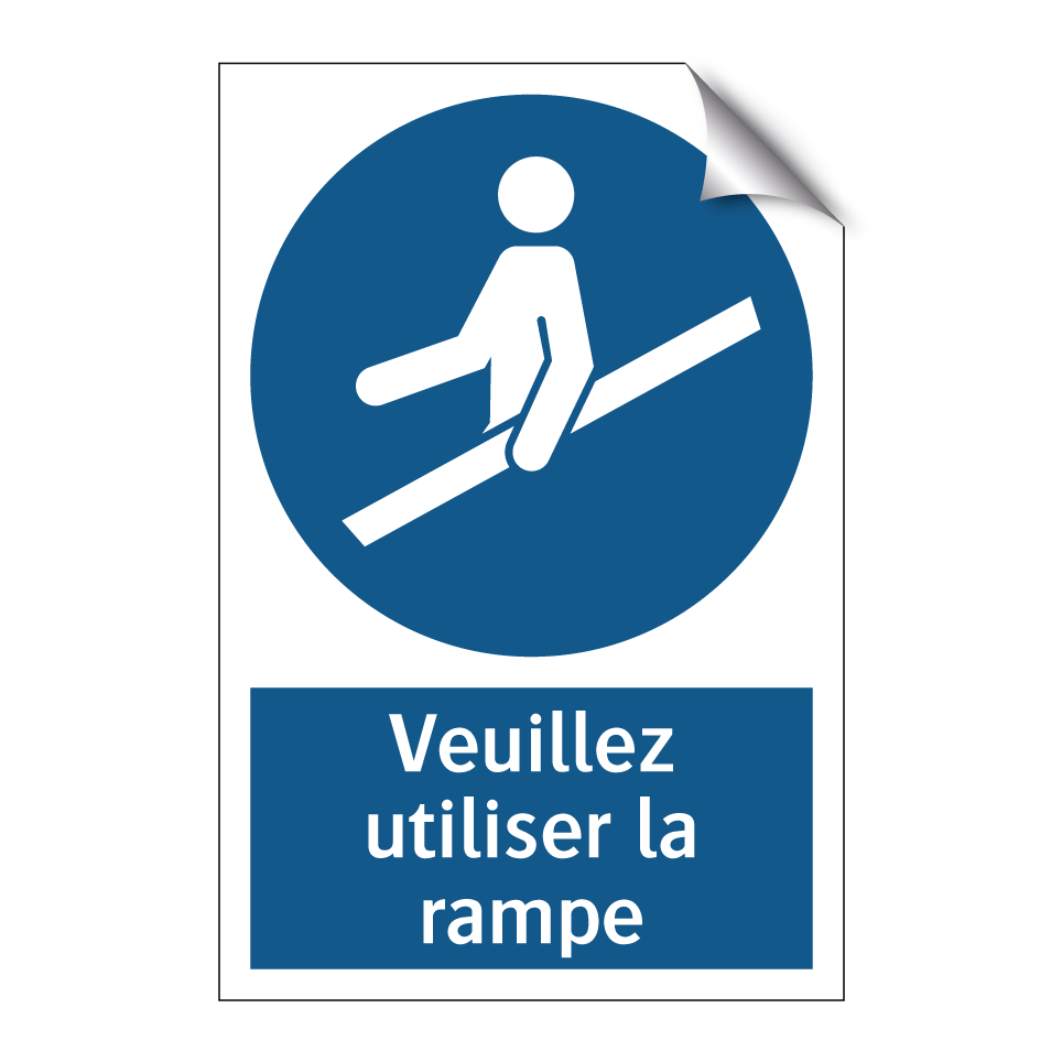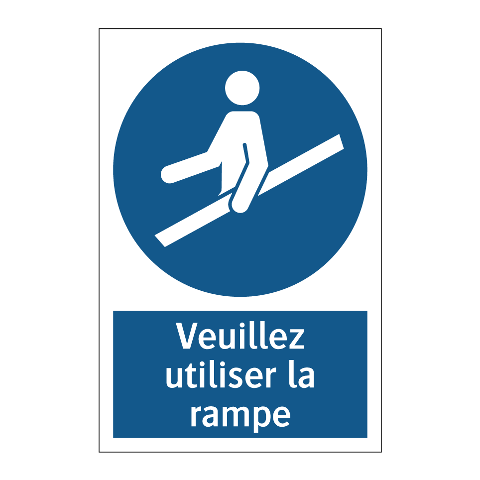Panneau d'obligation avec le texte : "Veuillez utiliser la rampe"