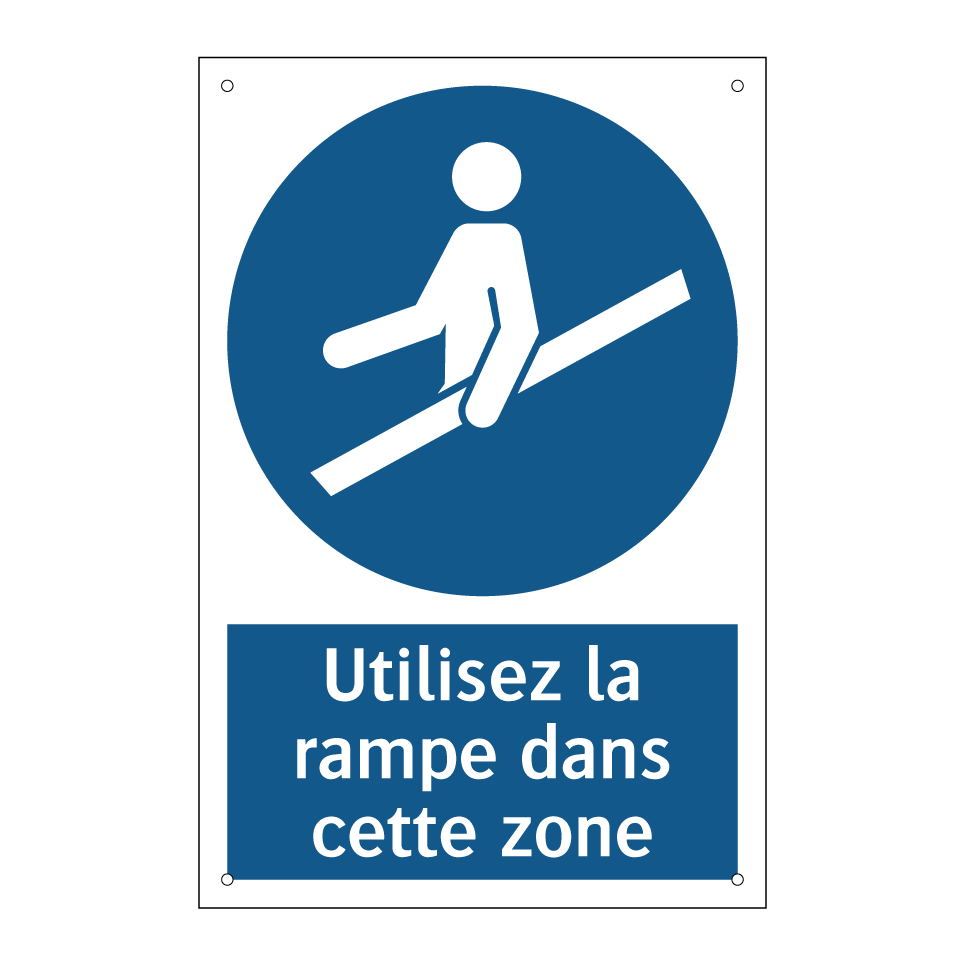 Panneau d'obligation avec le texte : "Utilisez la rampe dans cette zone"