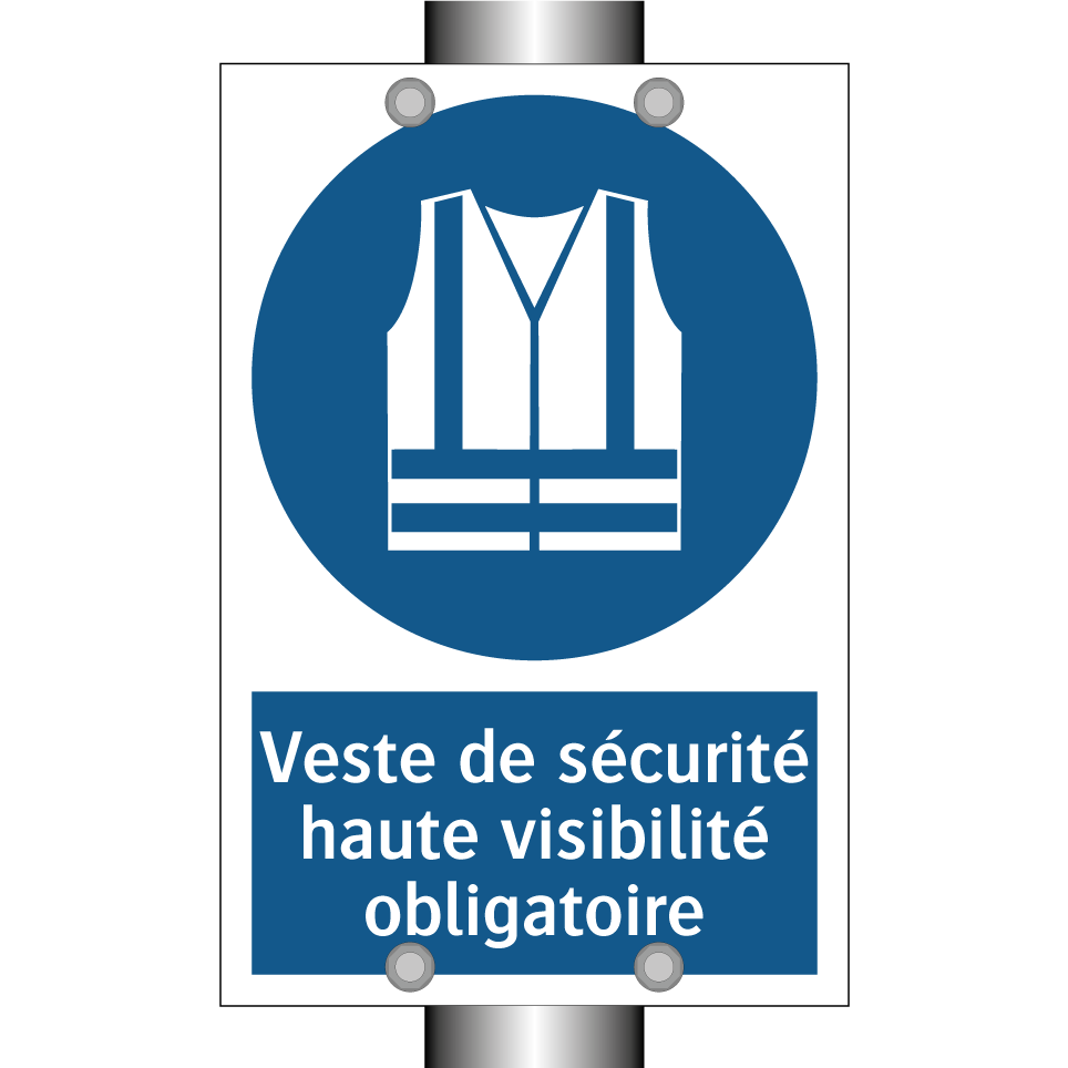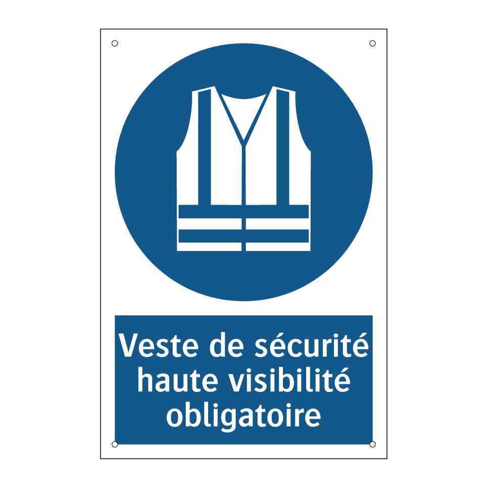 Panneau d'obligation avec le texte : "Veste de sécurité haute visibilité obligatoire"