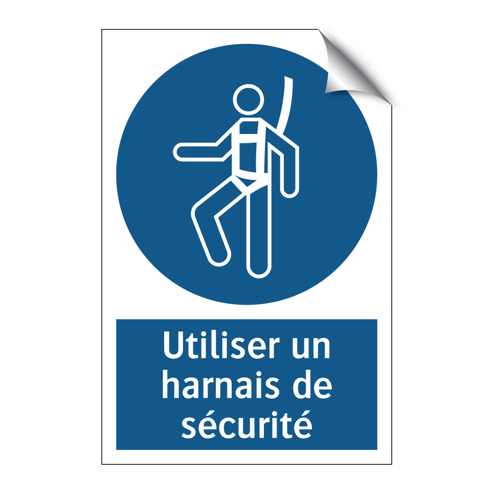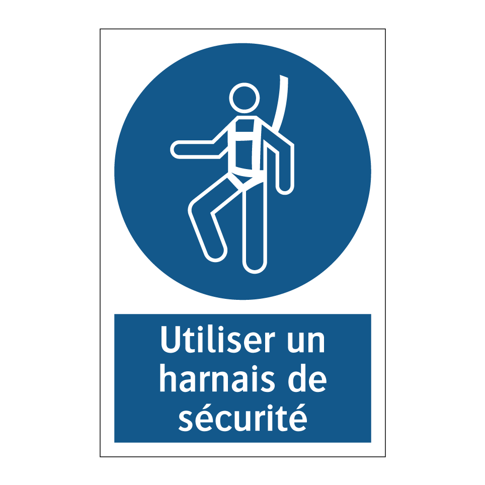 Panneau d'obligation avec le texte : "Utiliser un harnais de sécurité"