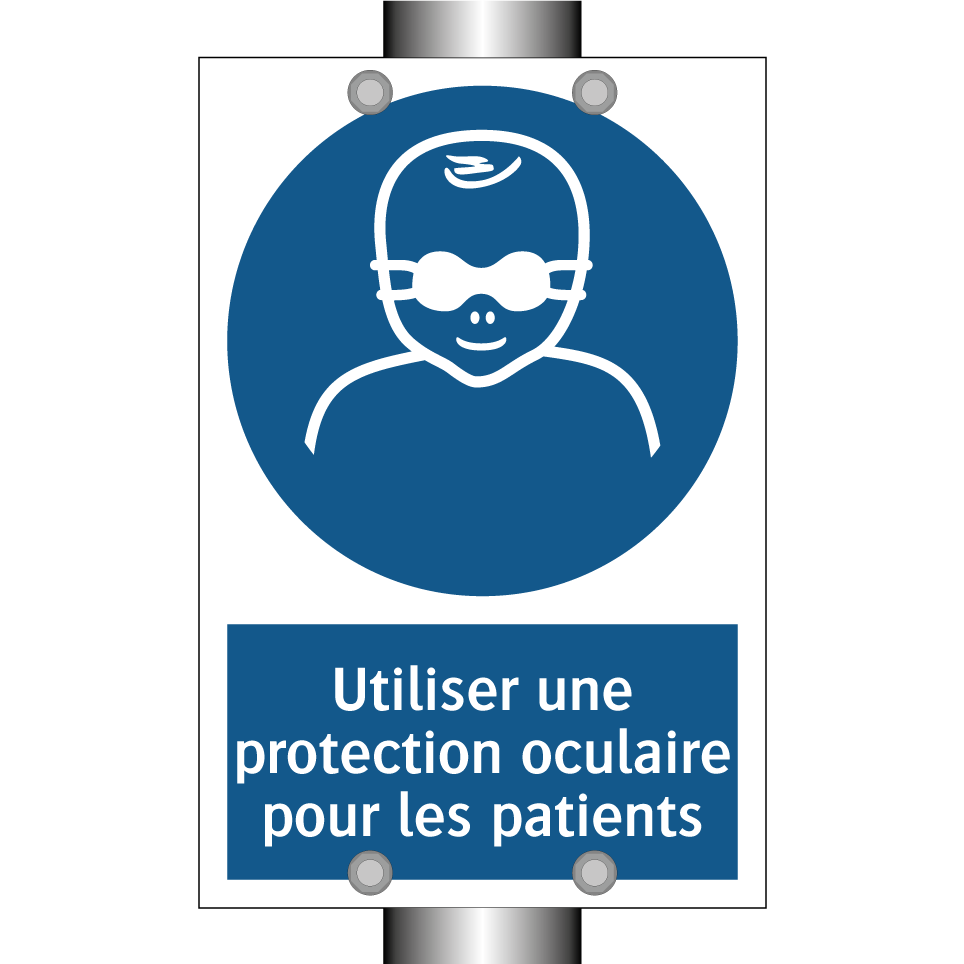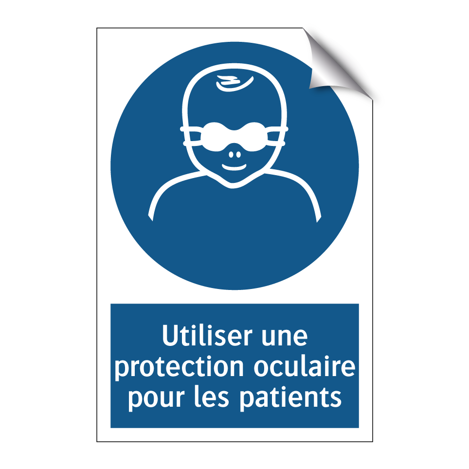 Panneau d'obligation avec le texte : "Utiliser une protection oculaire pour les patients"