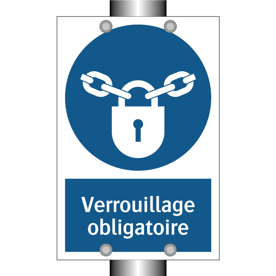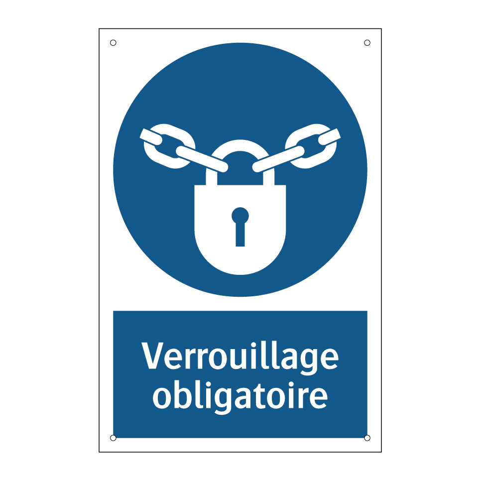 Panneau d'obligation avec le texte : "Verrouillage obligatoire"
