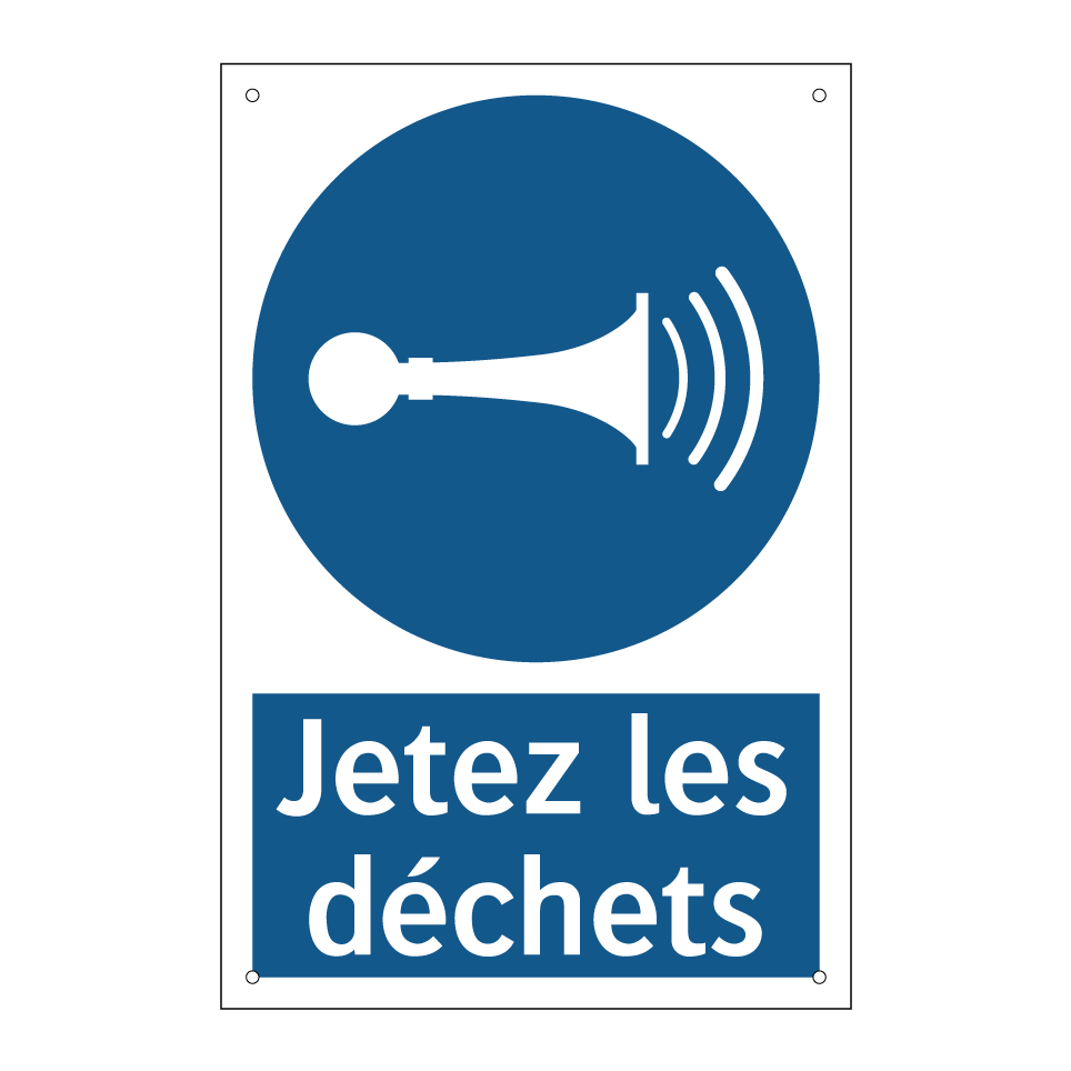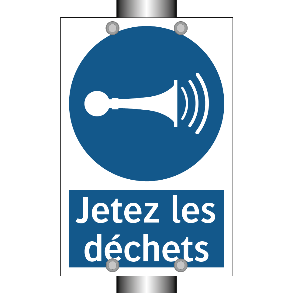 Panneau d'obligation avec le texte : "Jetez les déchets"
