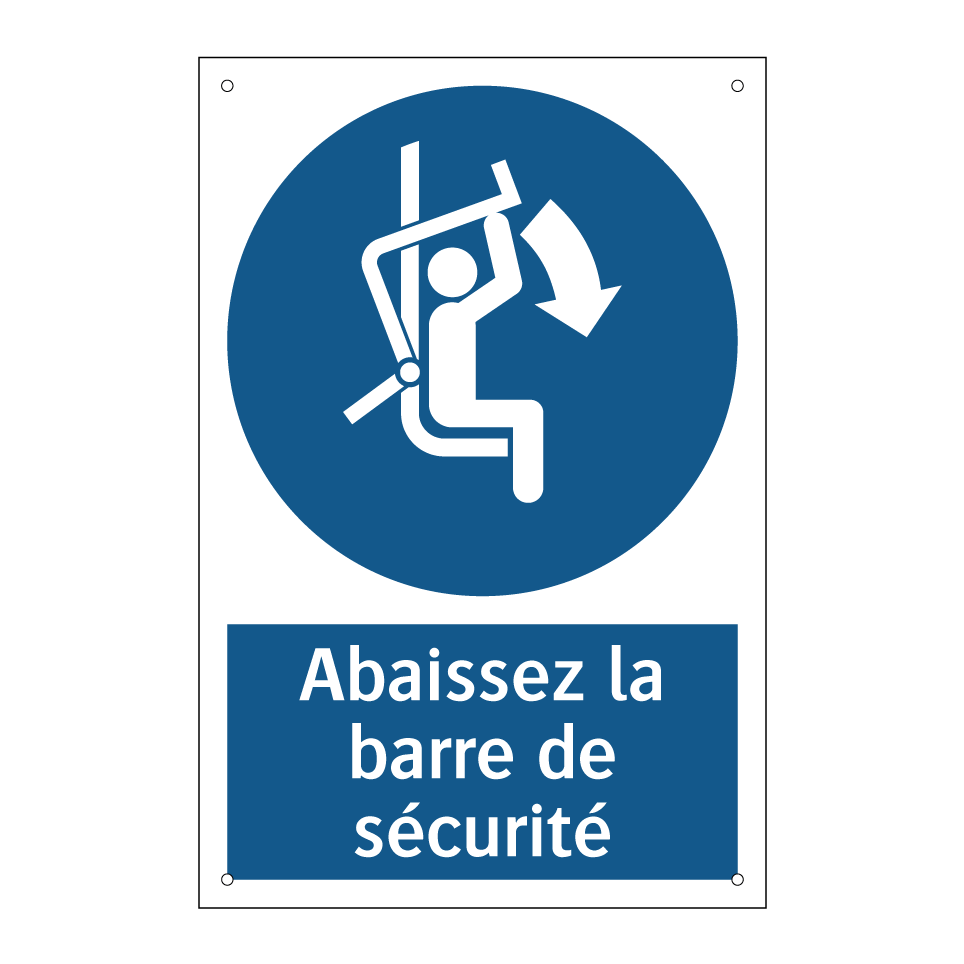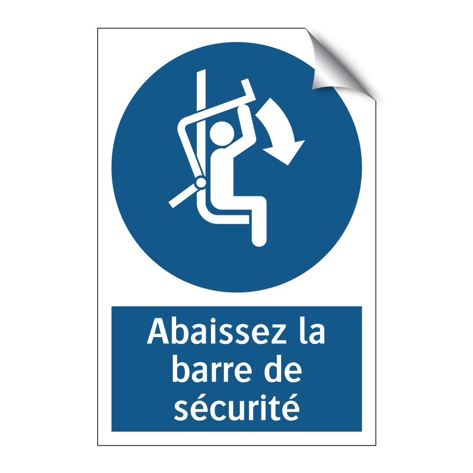 Panneau d'obligation avec le texte : "Abaissez la barre de sécurité"