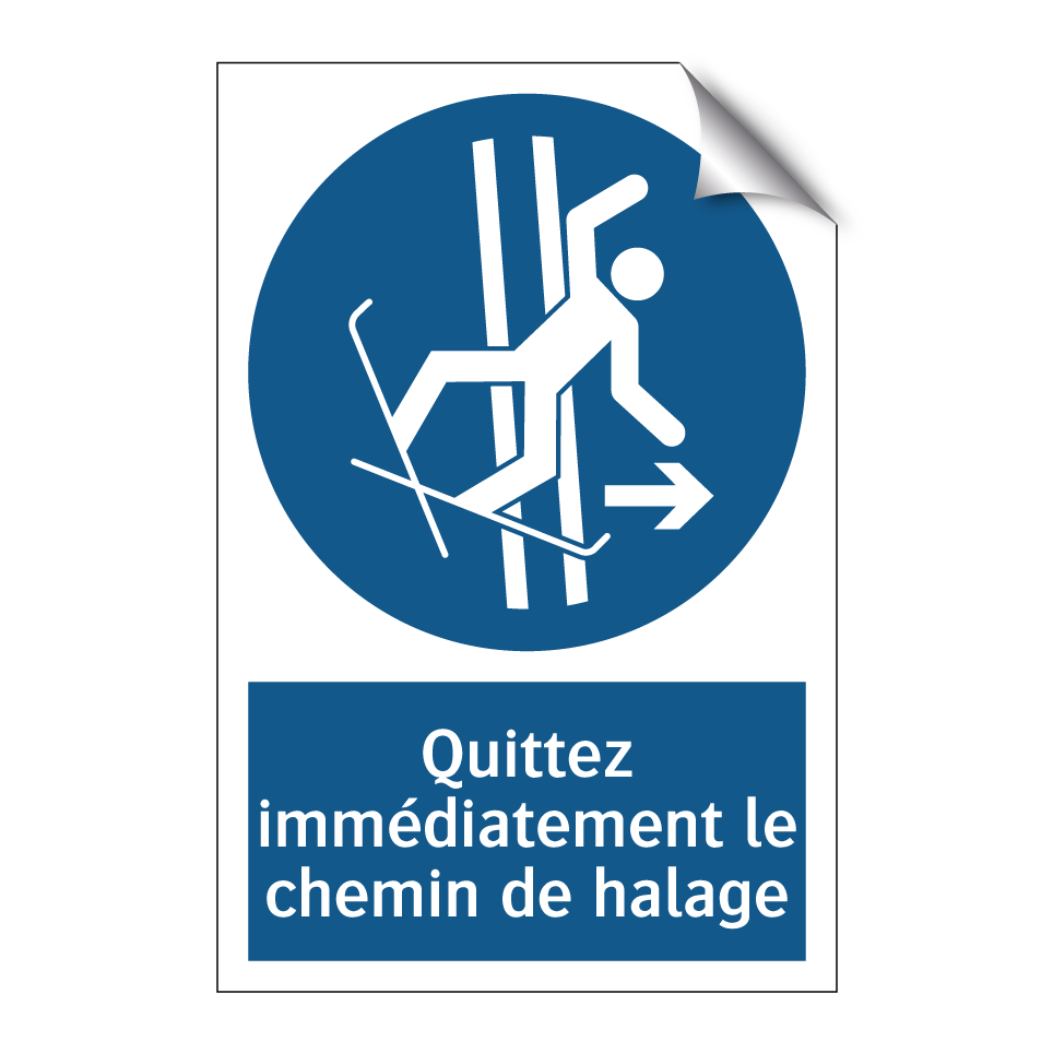 Panneau d'obligation avec le texte : "Quittez immédiatement le chemin de halage"