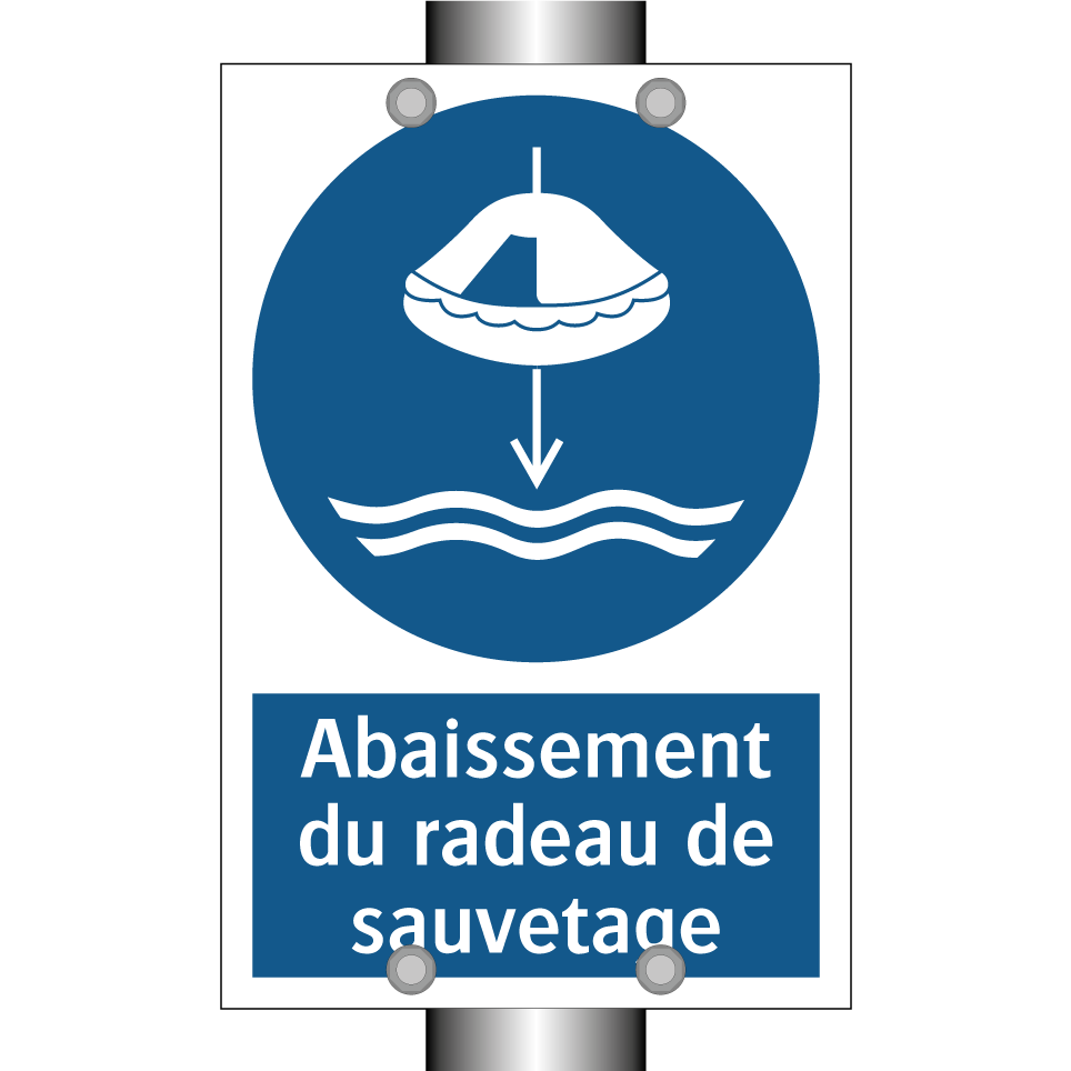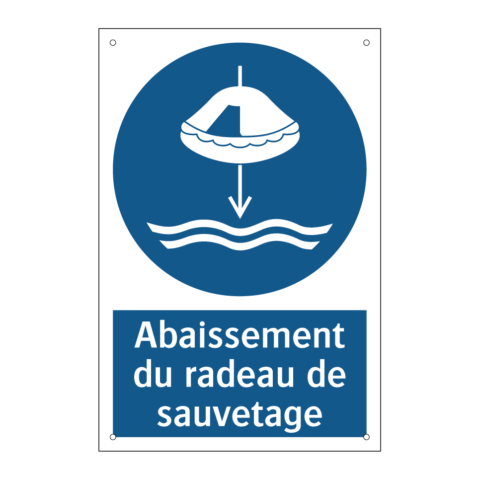 Panneau d'obligation avec le texte : "Abaissement du radeau de sauvetage"