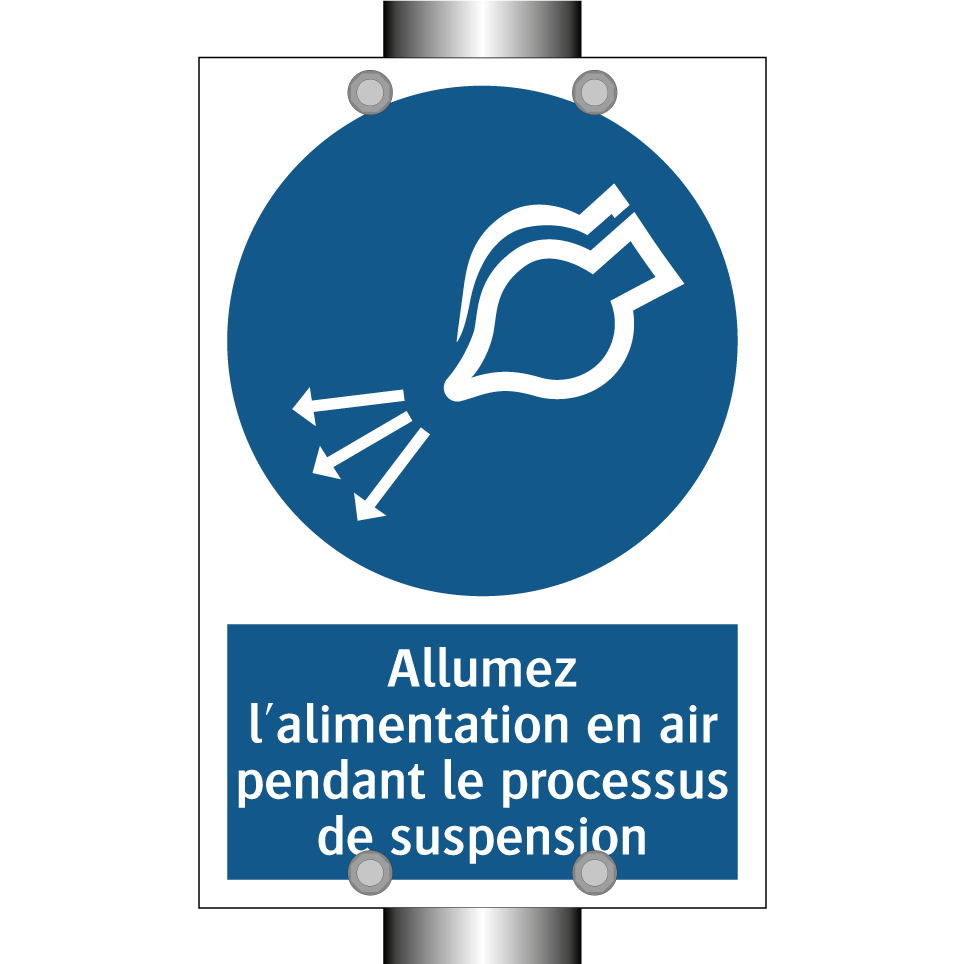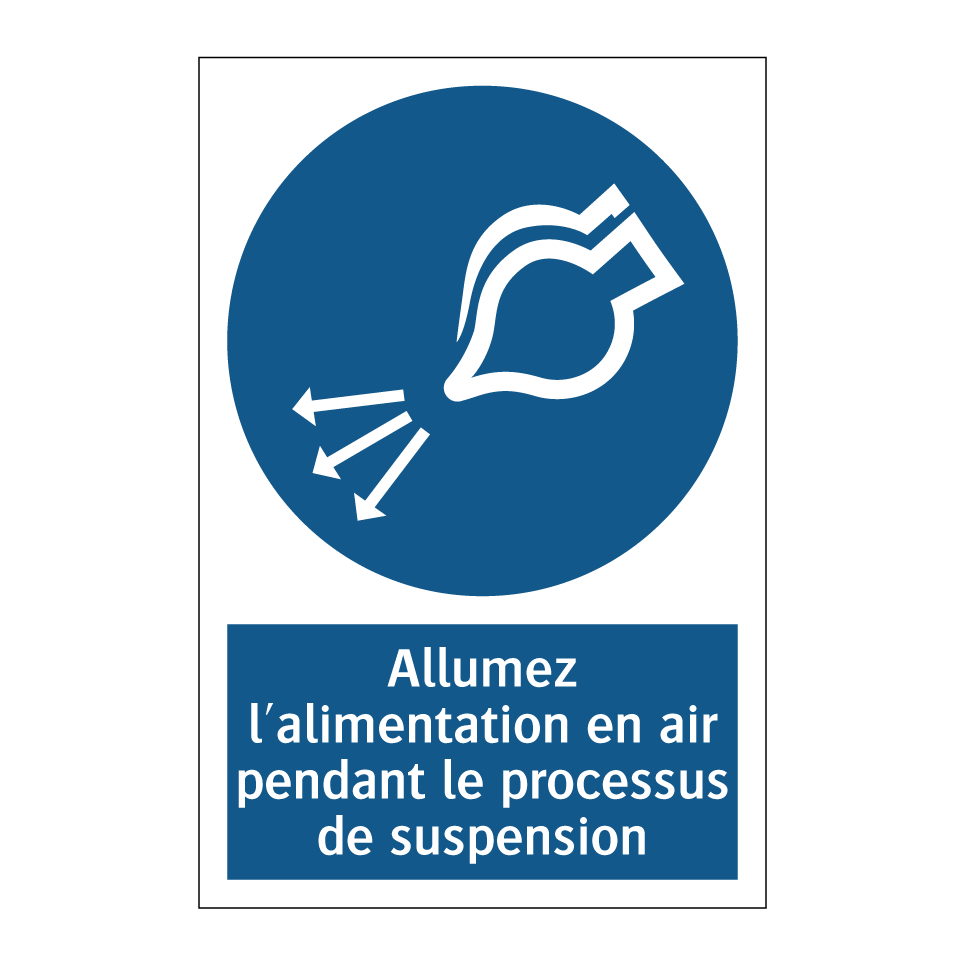 Panneau d'obligation avec le texte : "Allumez l'alimentation en air pendant le processus de suspension"
