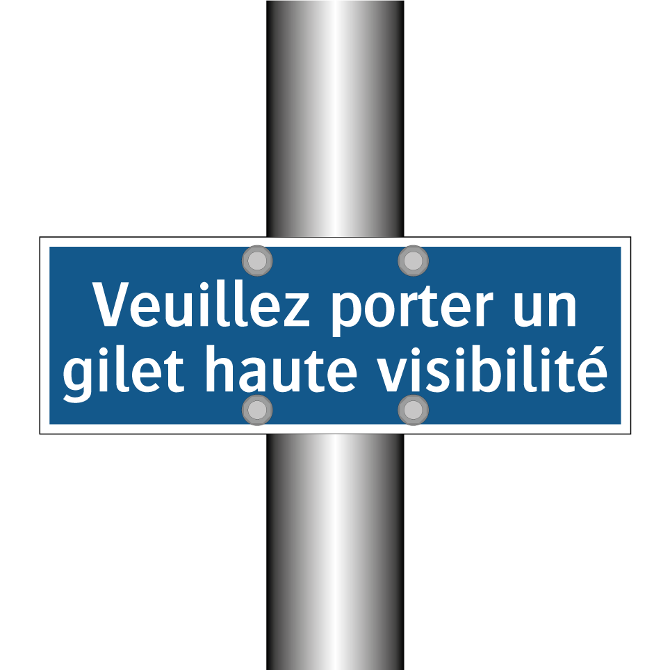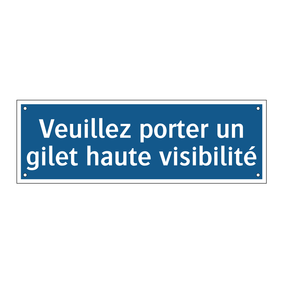 Panneau d'obligation avec le texte : "Veuillez porter un gilet haute visibilité"