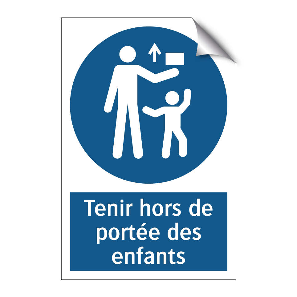 Panneau d'obligation avec le texte : "Tenir hors de portée des enfants"