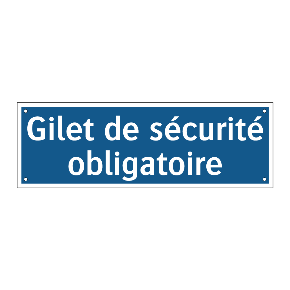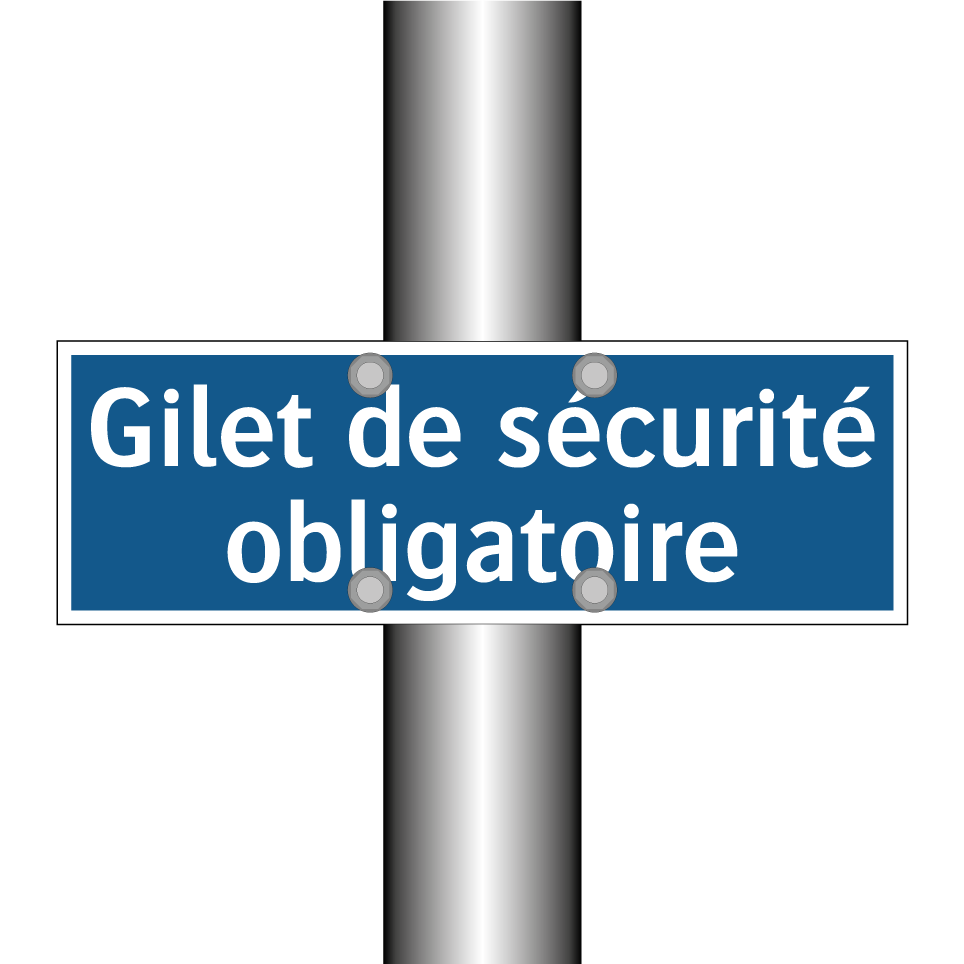 Panneau d'obligation avec le texte : "Gilet de sécurité obligatoire"