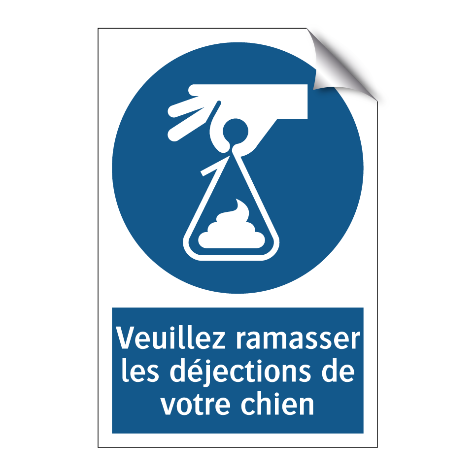 Panneau d'obligation avec le texte : "Veuillez ramasser les déjections de votre chien"