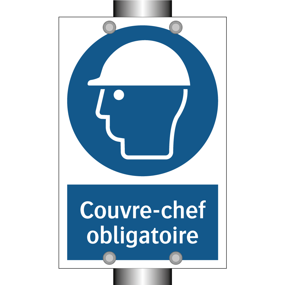 Panneau d'obligation avec le texte : "Couvre-chef obligatoire"