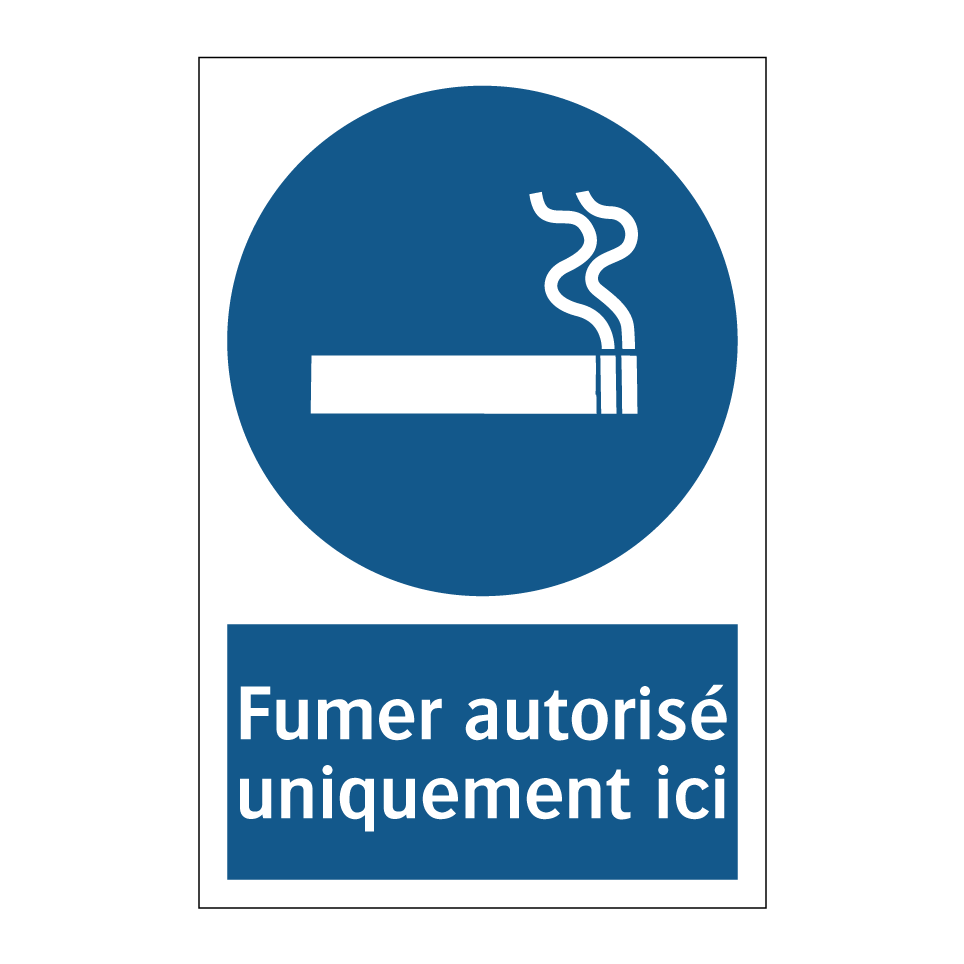 Panneau d'obligation avec le texte : "Fumer autorisé uniquement ici"
