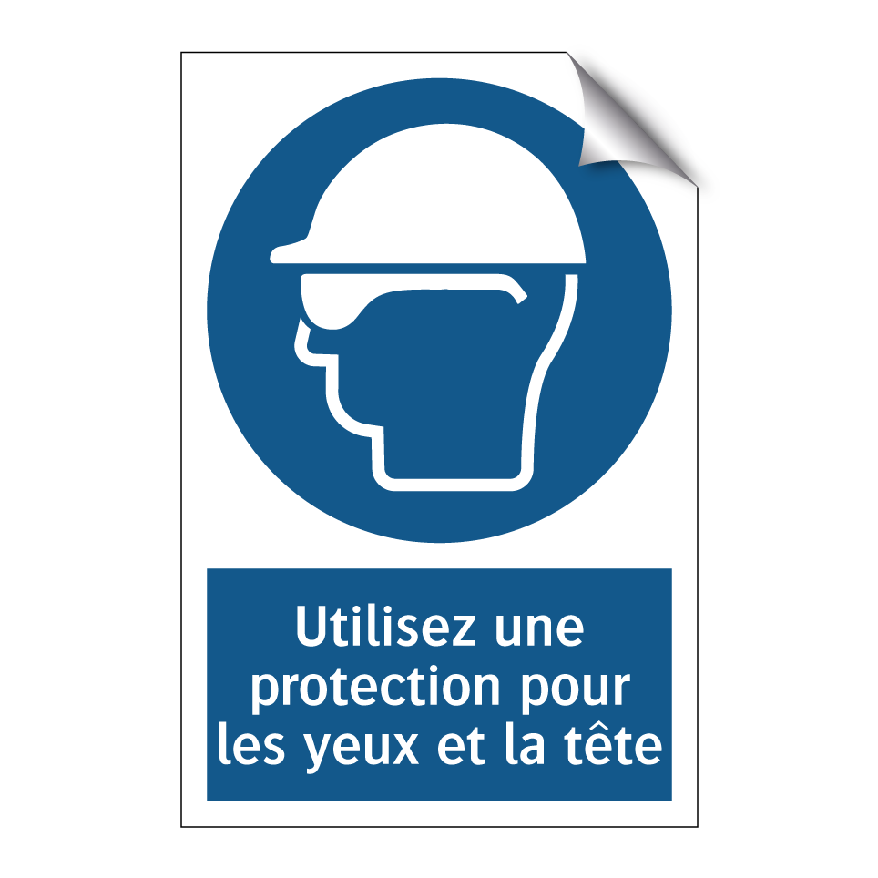 Panneau d'obligation avec le texte : "Utilisez une protection pour les yeux et la tête"