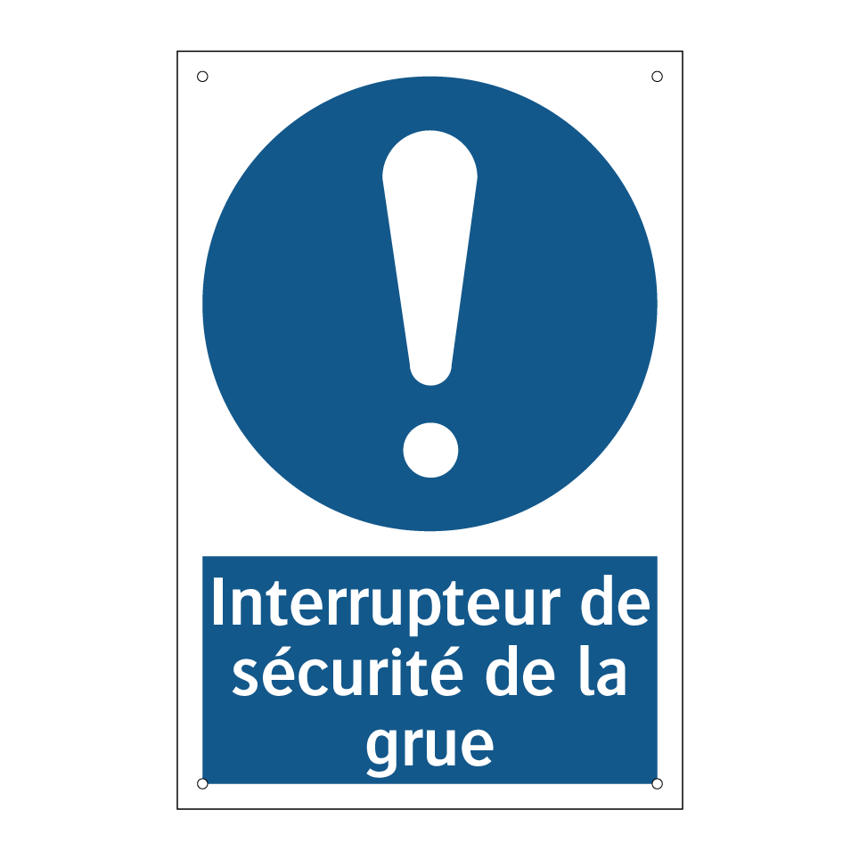 Panneau d'obligation avec le texte : "Interrupteur de sécurité de la grue"