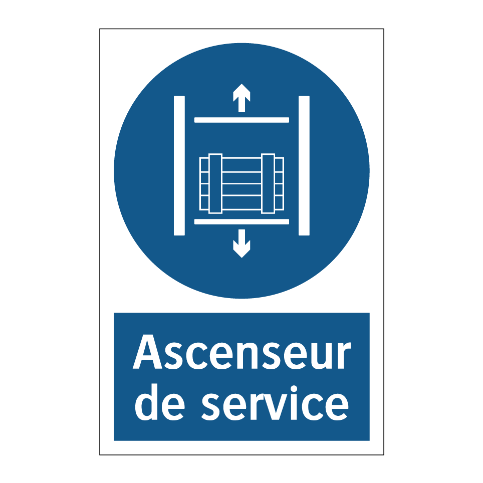Panneau d'obligation avec le texte : "Ascenseur de service"