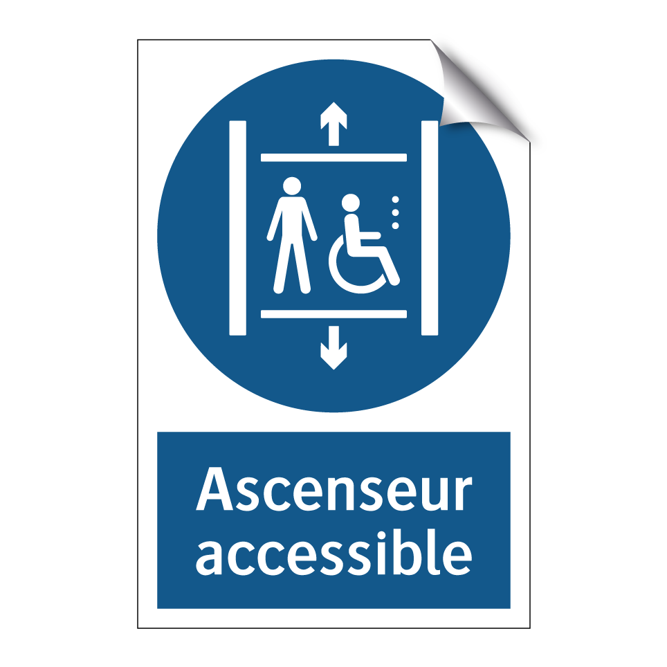 Panneau d'obligation avec le texte : "Ascenseur accessible"