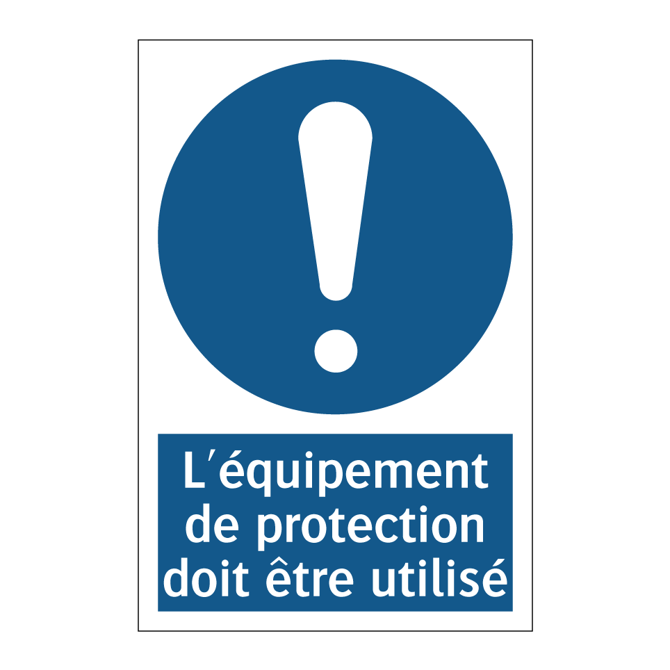 Ce panneau d'obligation est essentiel pour garantir la sécurité dans divers environnements de travail. Il est idéal pour être installé dans des usines, des chantiers de construction, ou tout autre lieu où le port d'équipements de protection individuelle est impératif. Grâce à sa couleur bleue et son texte blanc, il attire immédiatement l'attention et rappelle aux employés l'importance de se protéger. Ce type de signalisation est souvent utilisé dans les zones à risque pour prévenir les accidents et assurer le respect des normes de sécurité. En plaçant ce panneau à des endroits stratégiques, vous contribuez à créer un environnement de travail plus sûr et conforme aux réglementations en vigueur.