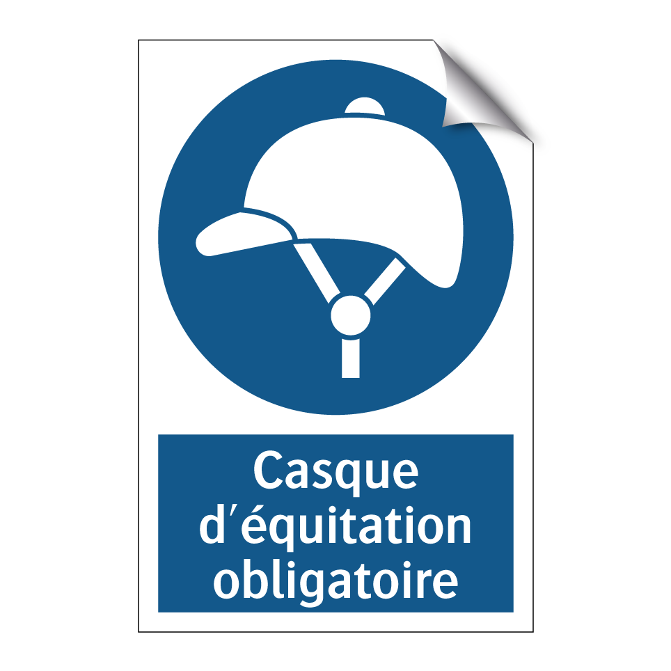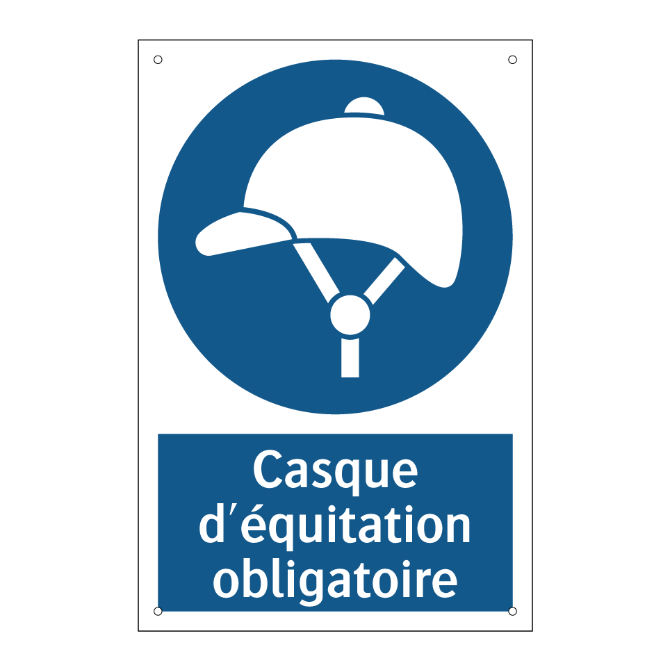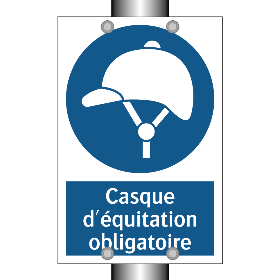 Panneau d'obligation avec le texte : "Casque d'équitation obligatoire"