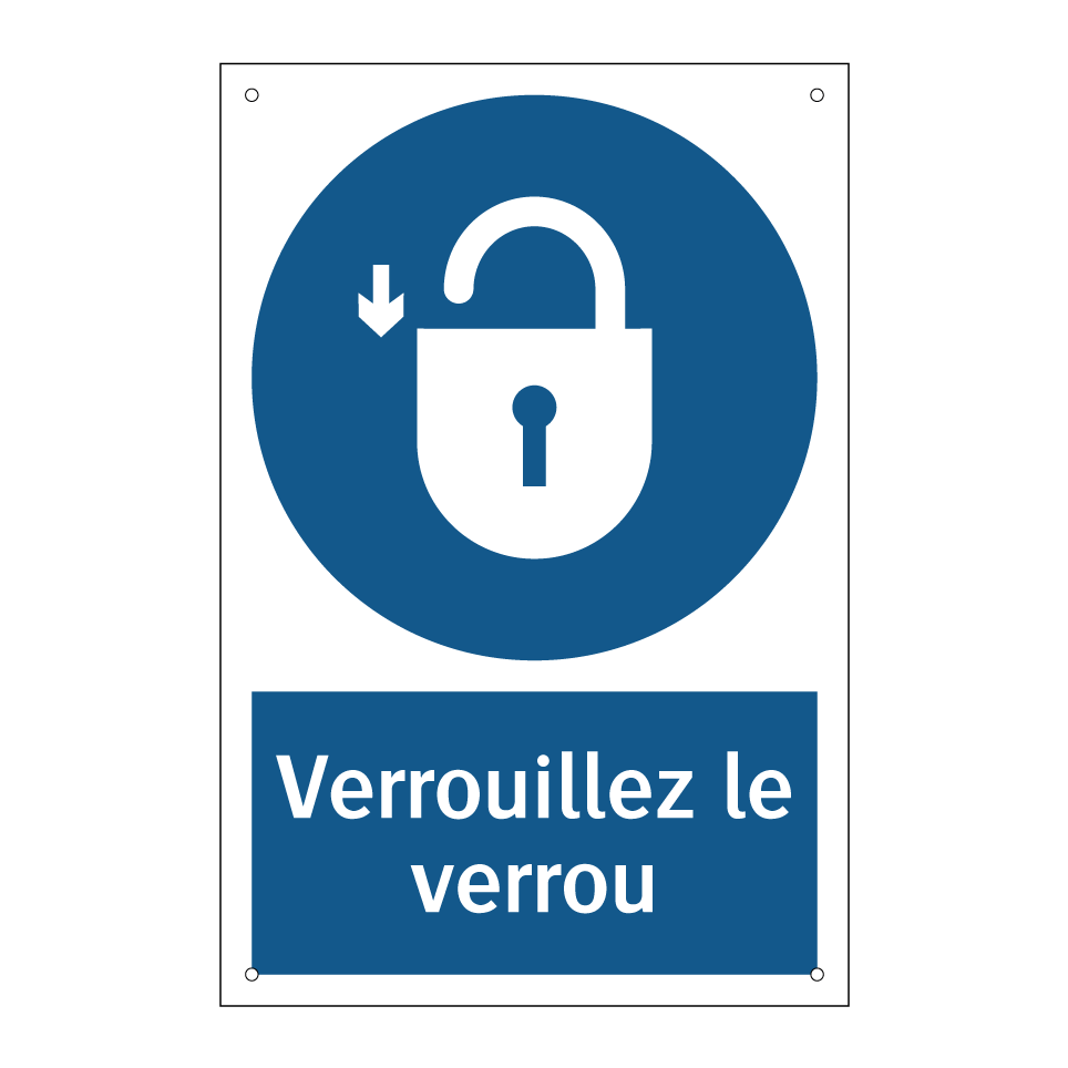 Panneau d'obligation avec le texte : "Verrouillez le verrou"