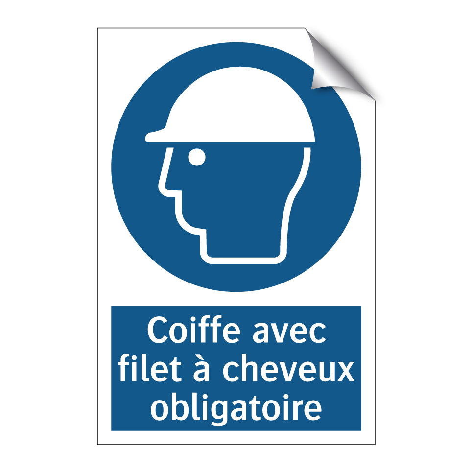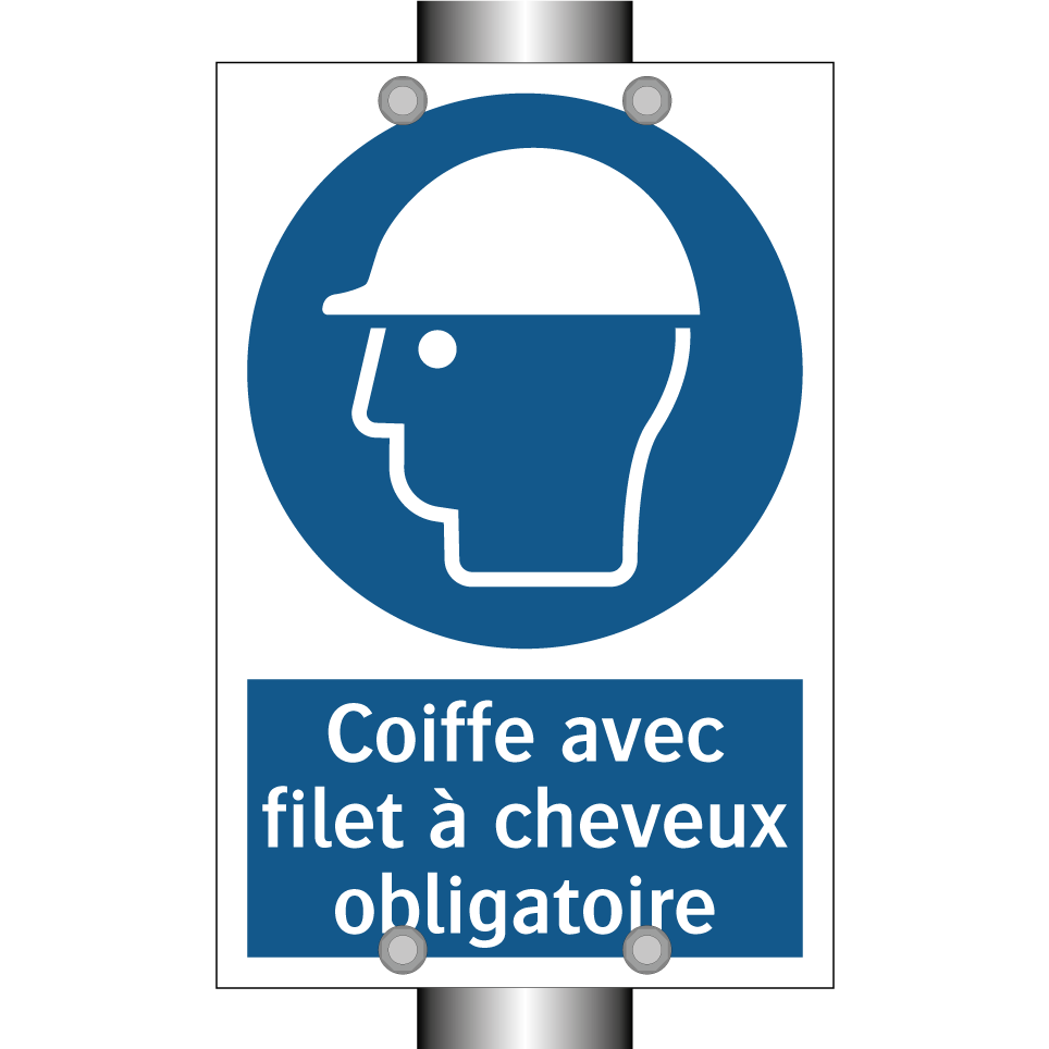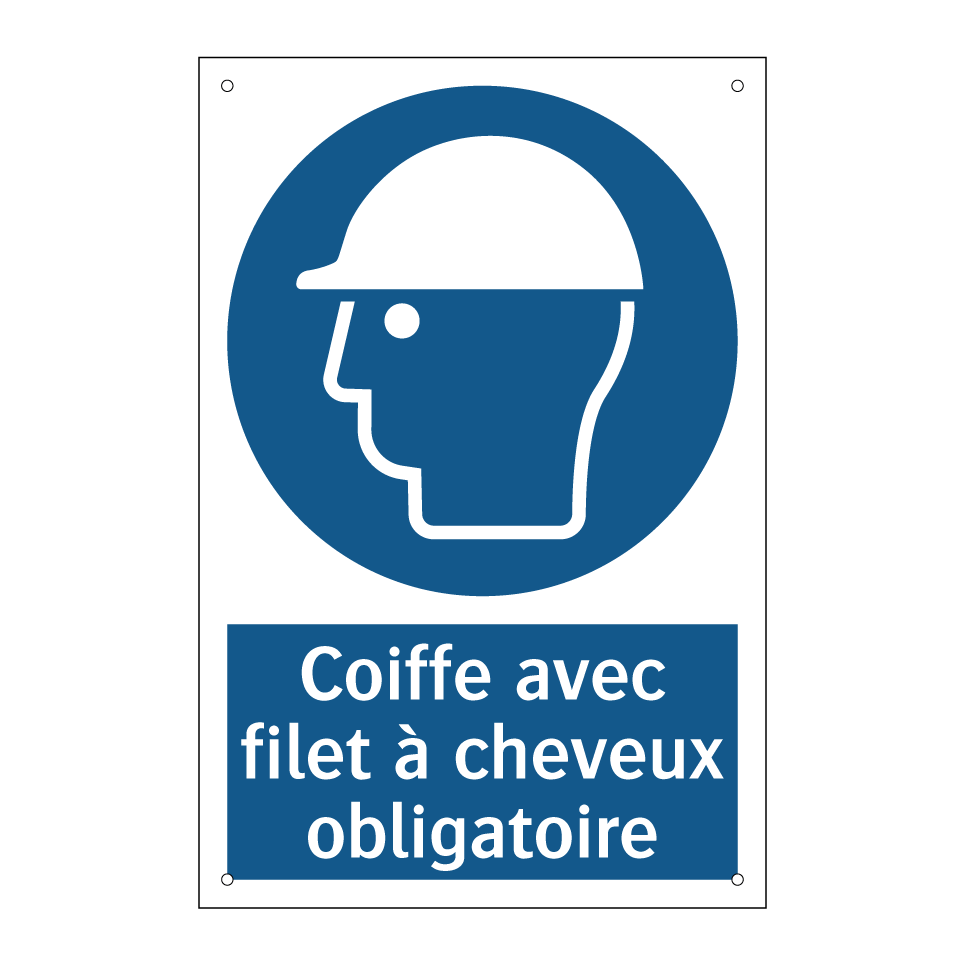 Panneau d'obligation avec le texte : "Coiffe avec filet à cheveux obligatoire"