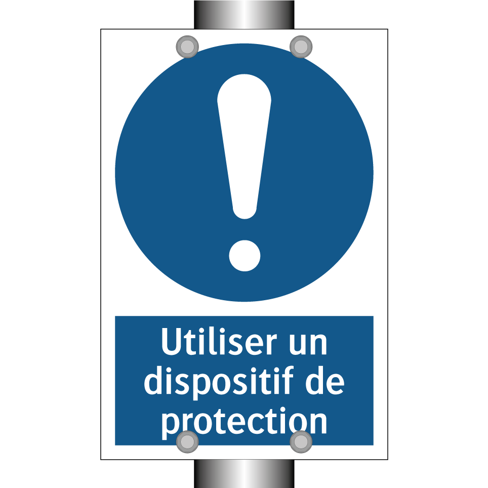 Panneau d'obligation avec le texte : "Utiliser un dispositif de protection"
