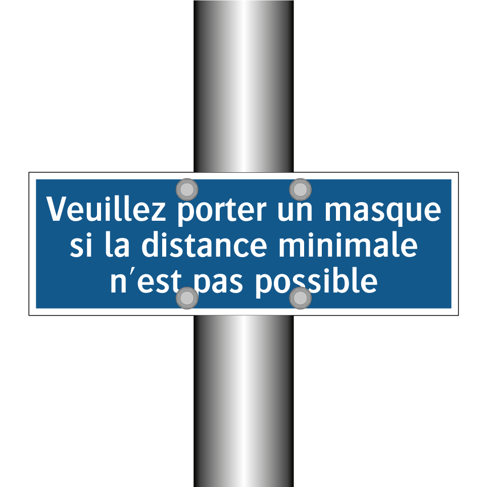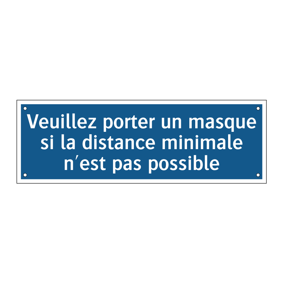 Panneau d'obligation avec le texte : "Veuillez porter un masque si la distance minimale n'est pas possible."